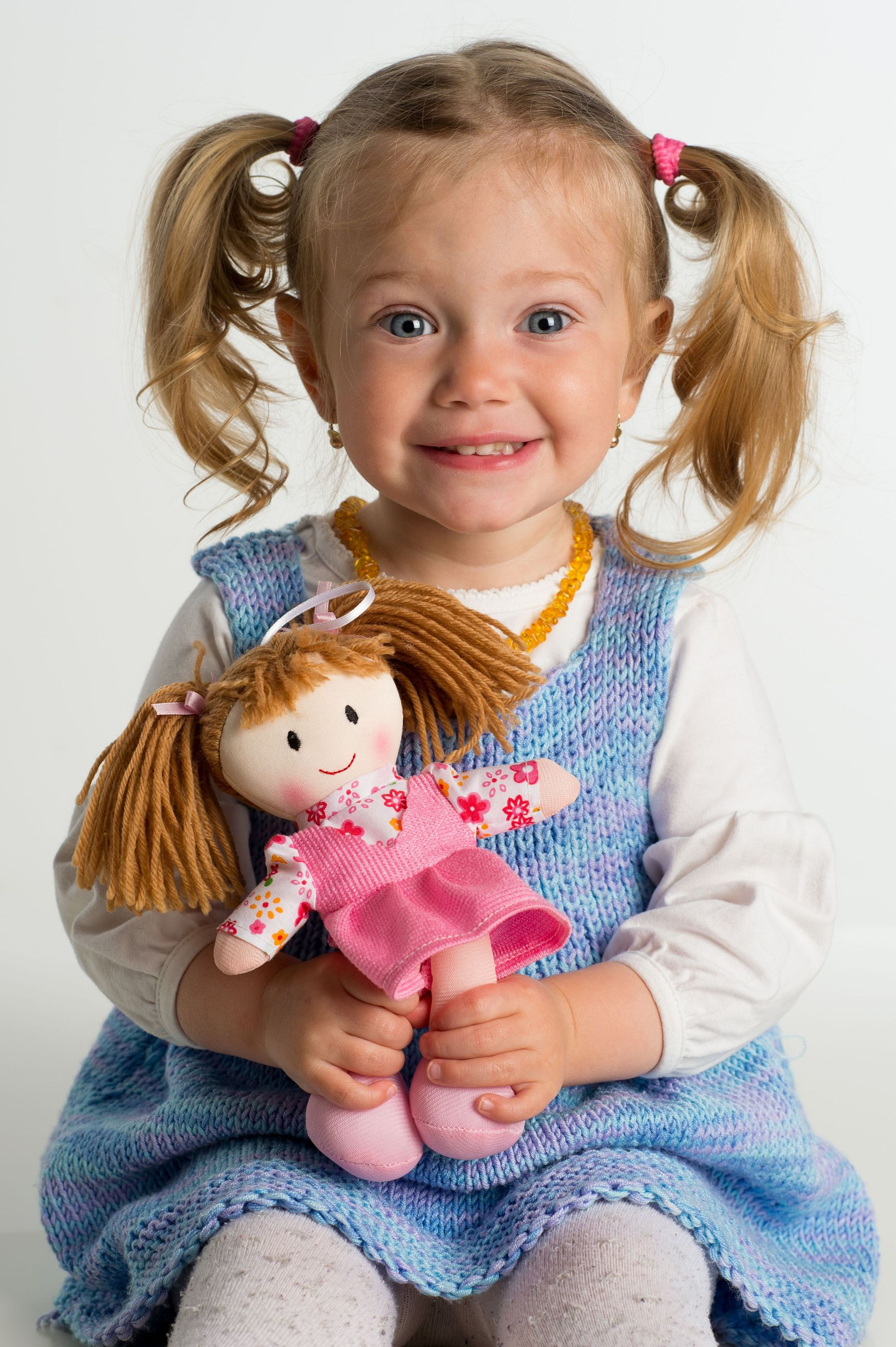 Bábika Anička po stlačení bruška hovorí: "Ahoj, ja som Anička a naučím ťa básničky" a hovorí básničk