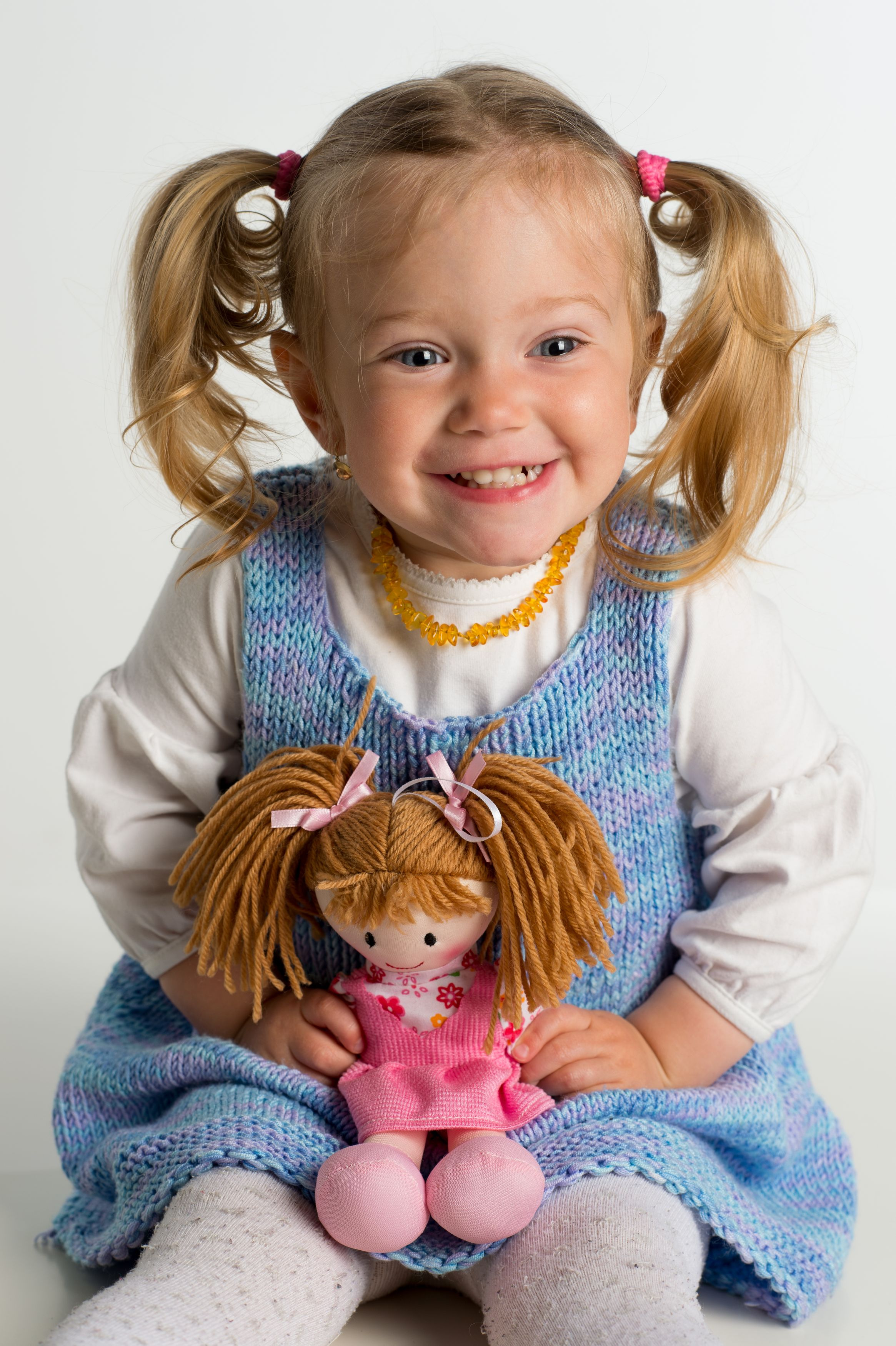 Hadrová panenka Terezka po zmáčknutí bříška povídá: "Mám Tě ráda, Povídej mi pohádku, Já jsem tvoje