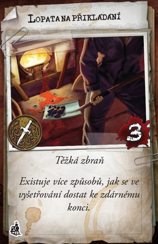 Obsah hry: 1 pravidla • 4 karty vyšetřovatelů a příslušné figurky • 18 mapových dílů 6 kartiček agendy • 13 kartiček běžných předmětů • 7 kartiček unikátních předmětů 15 kartiček kouzel • 8 kartiček se stavem • 4 kartičky zranění • 4 kartičky strachu • 7 žetonů nestvůr a příslušné figurky • 43 žetonů trhliny/vody • 6 žetonů osob • 4 žetony dveří