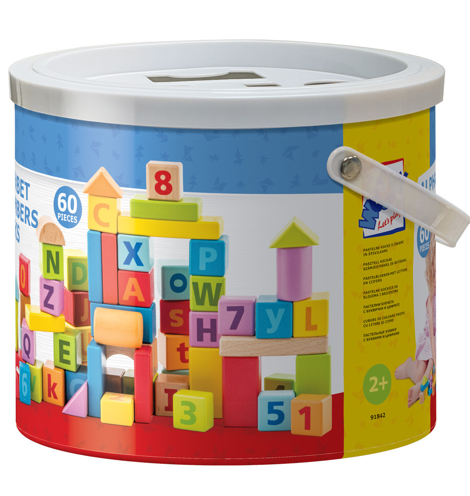 Tyto dřevěné kostky zaujmou dítě svými zářivými pastelovými barvami a různými tvary. Přímo vybízejí ke hře a stavění věží. Přidanou hodnotou těchto kostech jsou bezpochyby písmenka, která dítě již od první hry s nimi podprahově vnímá, vybízí ke zvídavým otázkám a později je schopno skládat s rodiči první jednoduchá slova a jména. | Věk: 2+| Rozměr krychle: 3 cm | Počet ks: 60