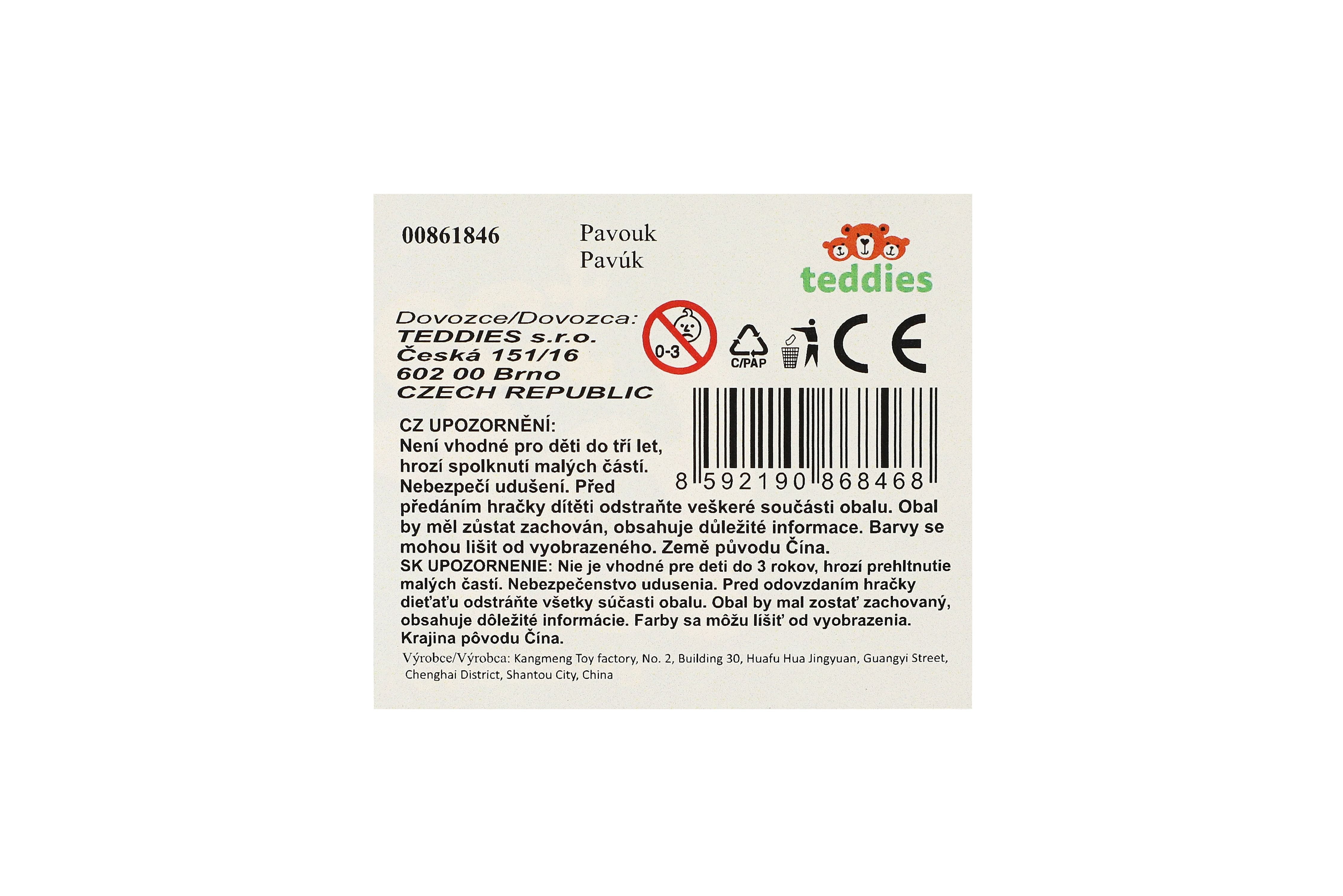 Pavouk antistresový pevné tělo plast/silikon 19x18cm na kartě