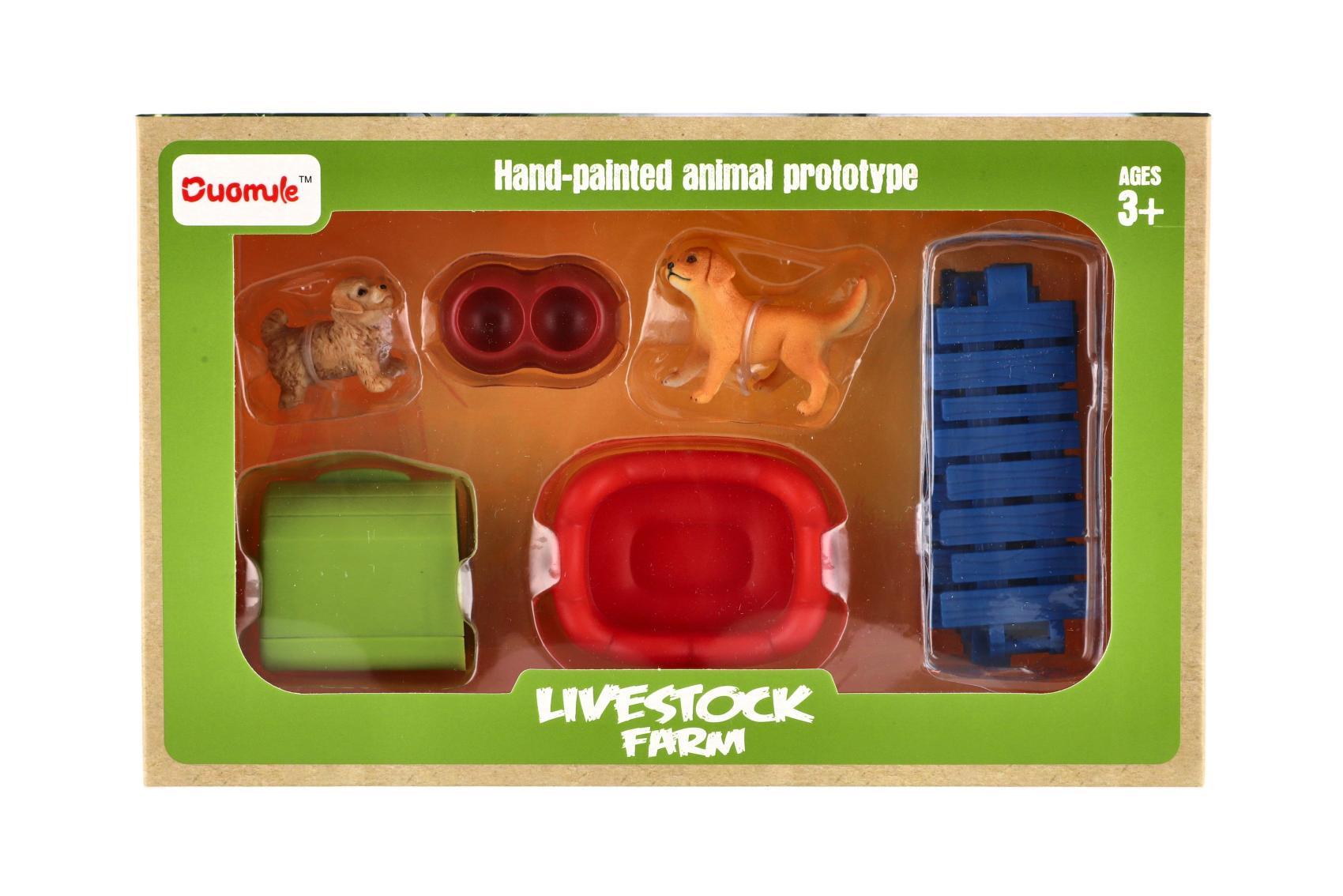 Pejskové/Pes 2ks s plotem plast s doplňky v krabici 23x14,5x4,5cm