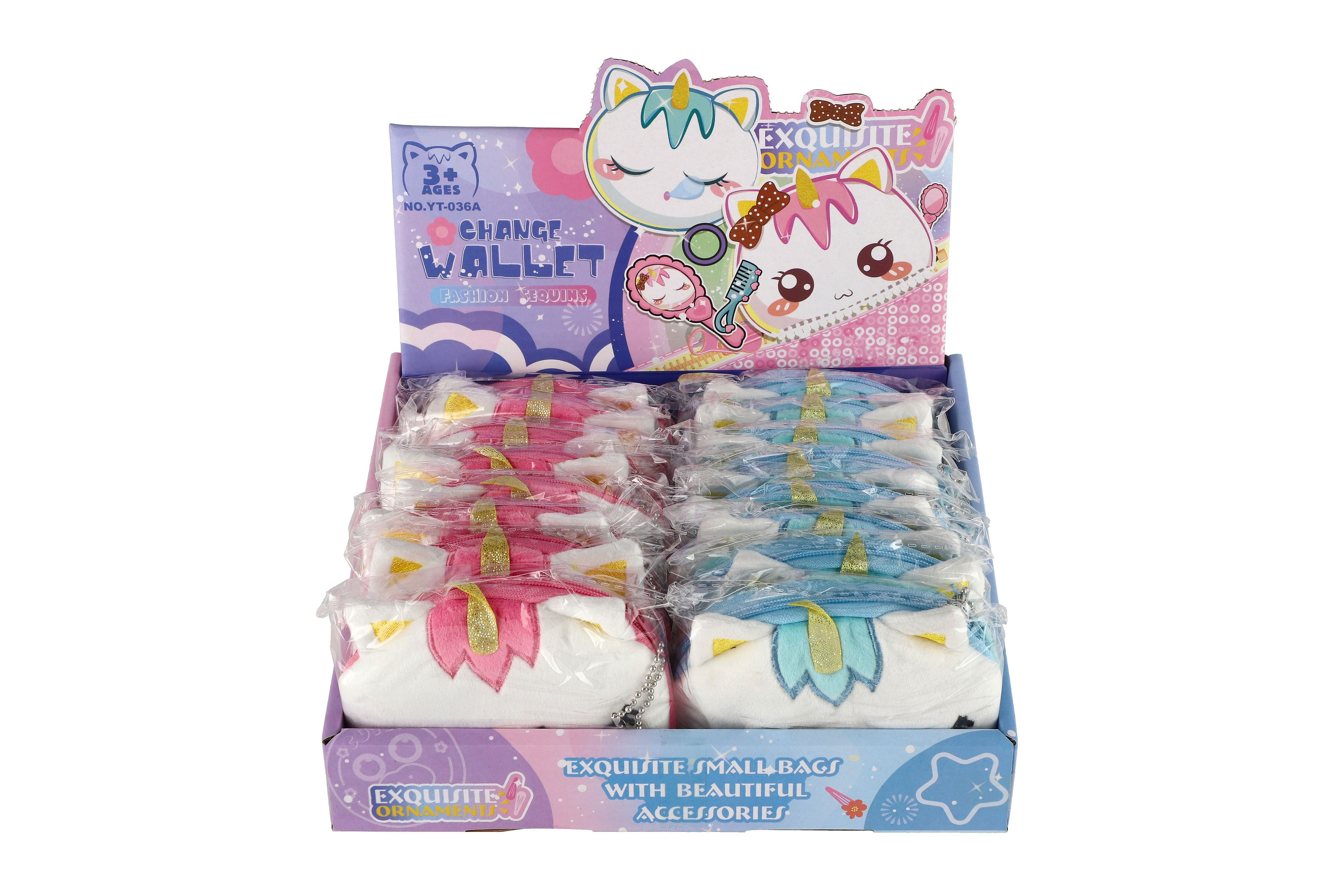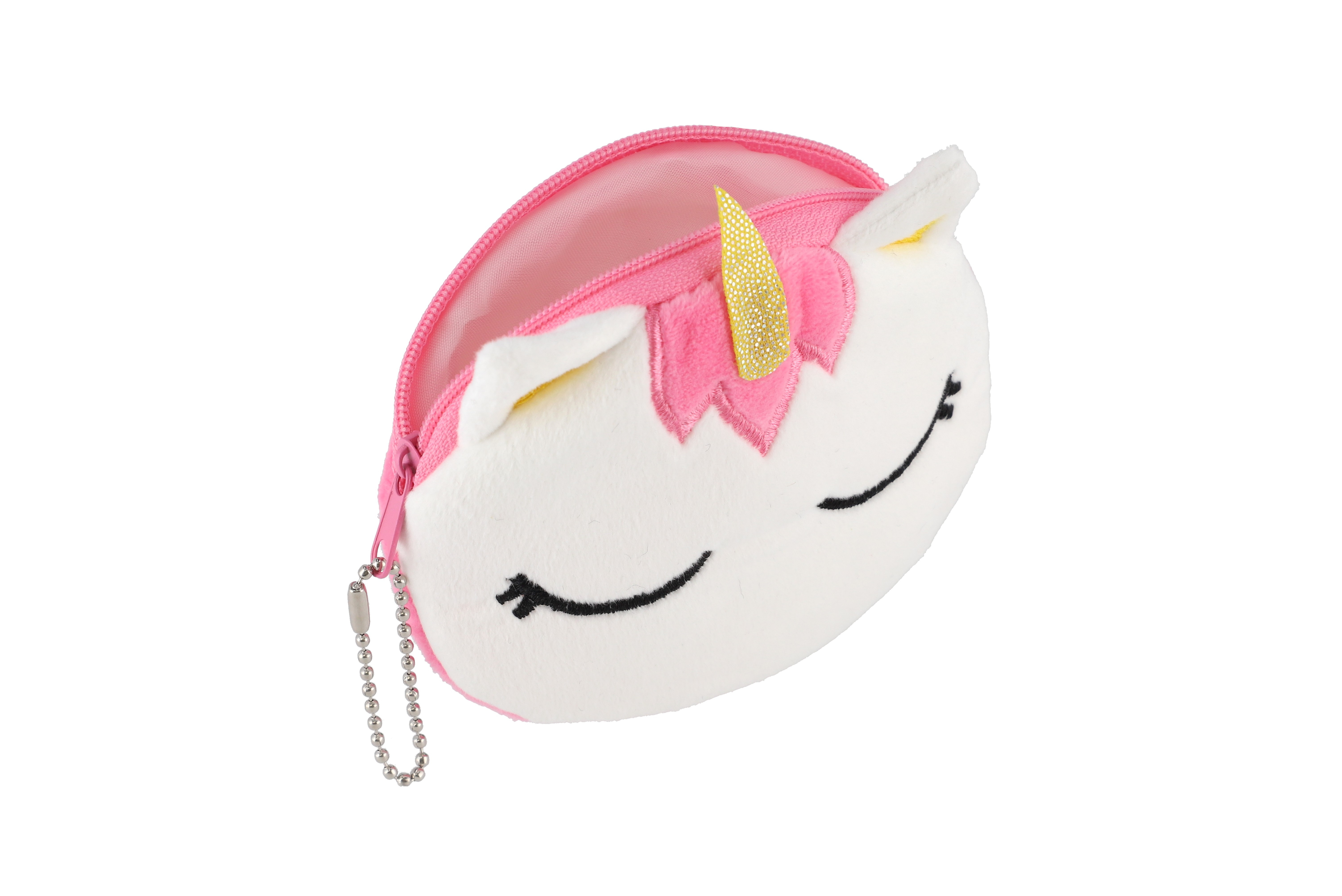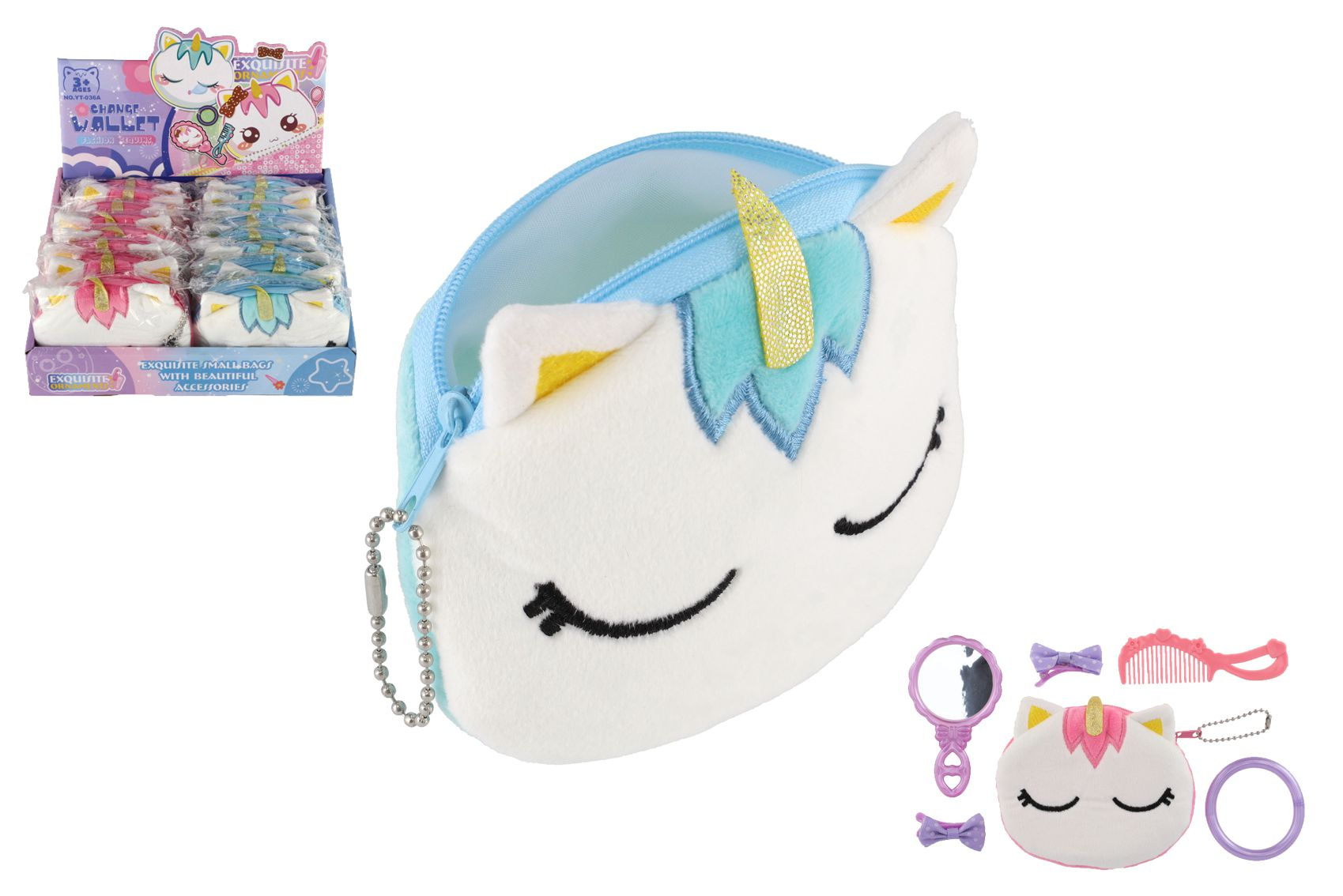 Malá šikovná peněženka se vejde do každé kabelky. Přední stranu má ozdobenou potiskem jednorožce. Zavírá se na zip. Peněženka s doplňky do vlasů. Rozměry výrobku 12 x 10 x 2 cm. Vhodné pro děti od 3 let.