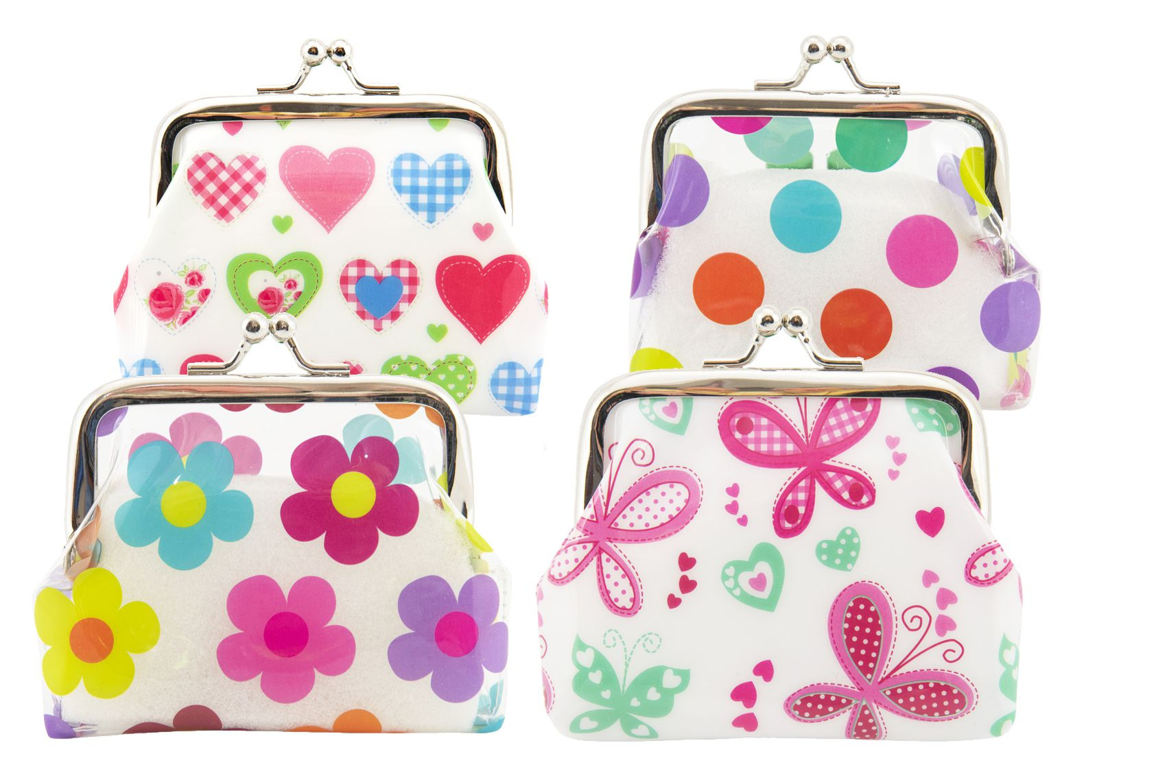 Teddies Peněženka dívčí plast/kov 9x8cm 4 barvy v sáčku