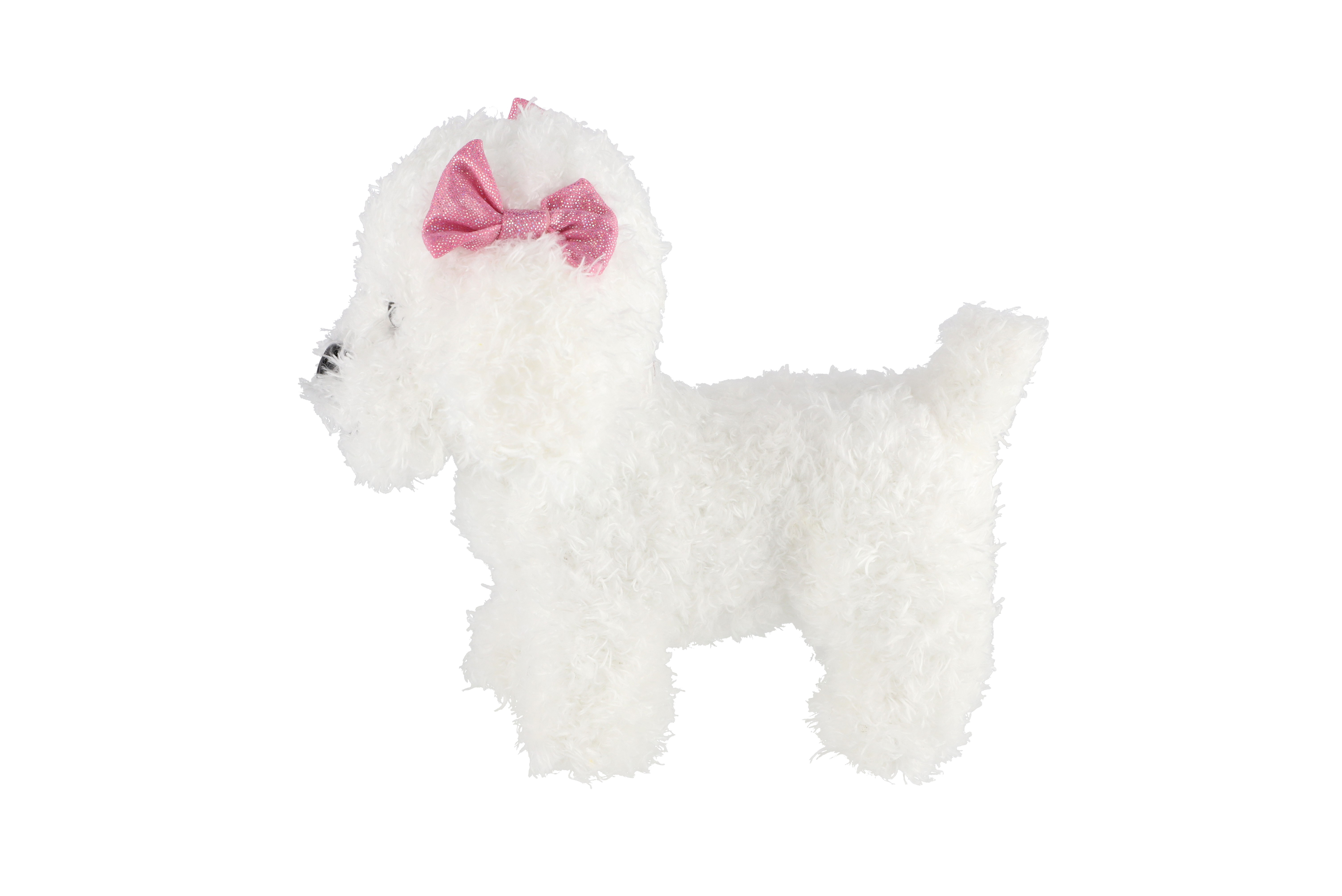 Pes/Pejsek stojící s mašlemi plyš 21cm bílý v sáčku 0+