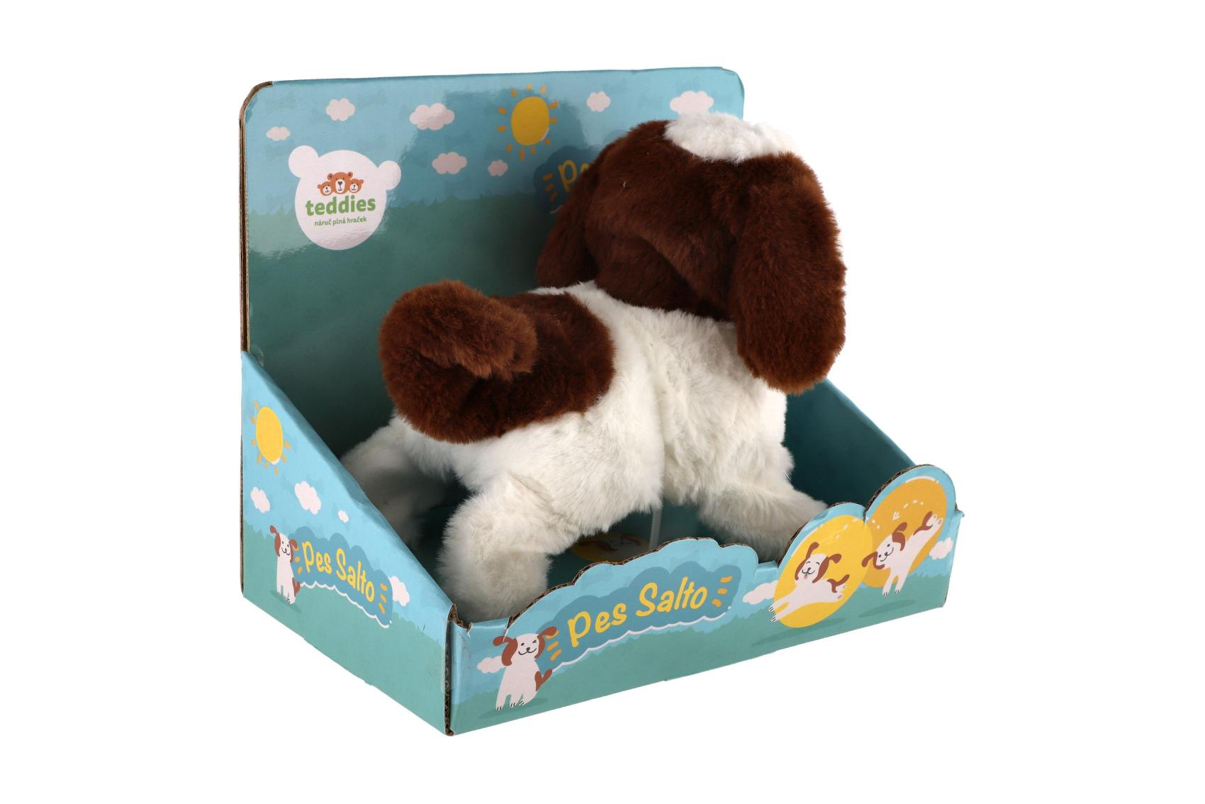 Pes Salto skákací chodící 19cm na baterie se zvukem v krabici 23x19x15cm