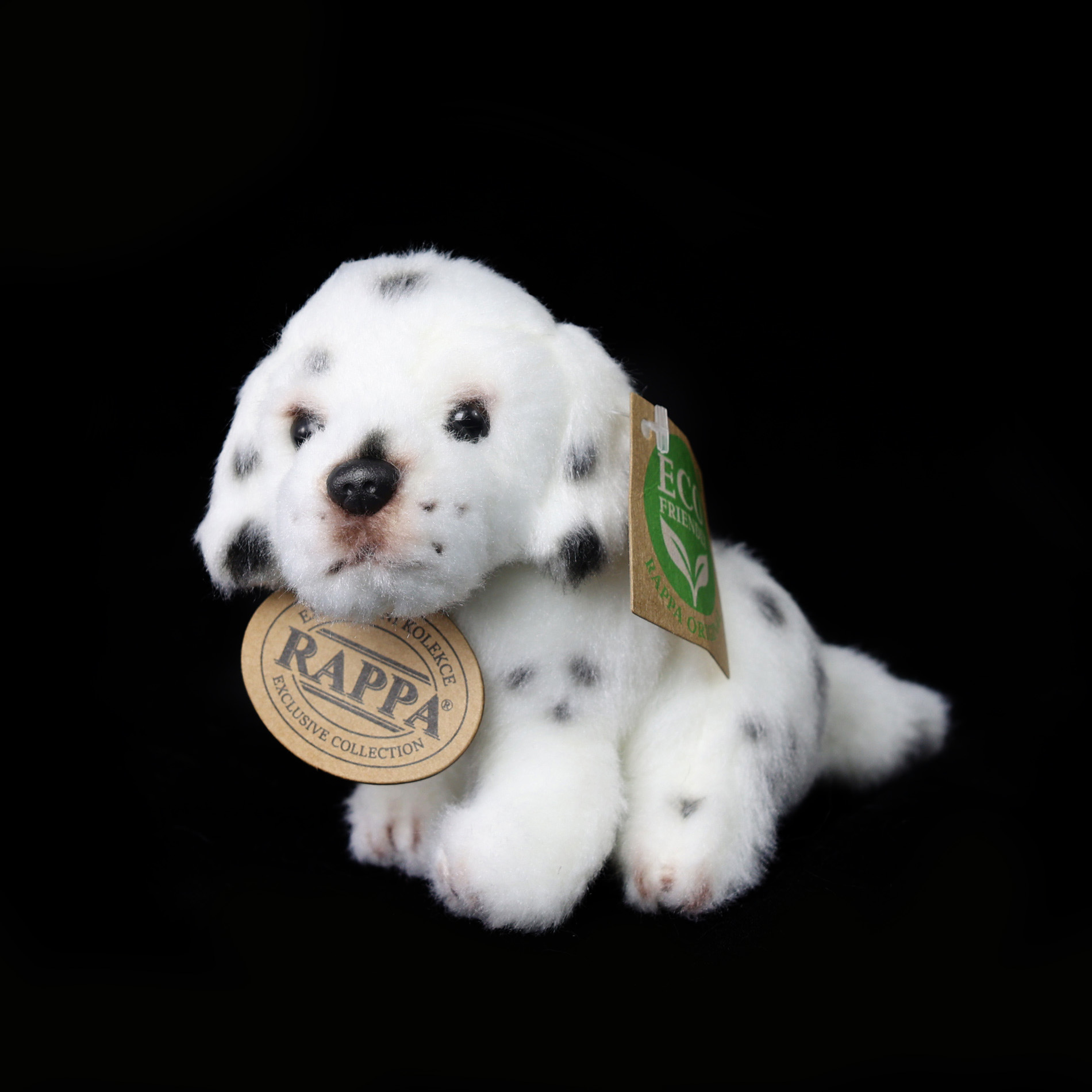 Nádherný plyšový pes o velikosti 11 cm v šesti druzích. Pes je vyroben z kvalitní plyše a je tak součástí exkluzivní kolekce plyšových hraček RAPPA. Co to vlastně ECO-FRIENDLY znamená? Výplň plyšové hračky je vyrobena z recyklovaných PET lahví. Tento materiál je zcela bezpečný, na omak nerozeznatelný od standardní výplně a plně atestovaný pro bezpečnost i těch nejmenších. Rozhodli jsme se jít zelenou cestou co nejméně zatěžující životní prostředí- cestou ECO-FRIENDLY.