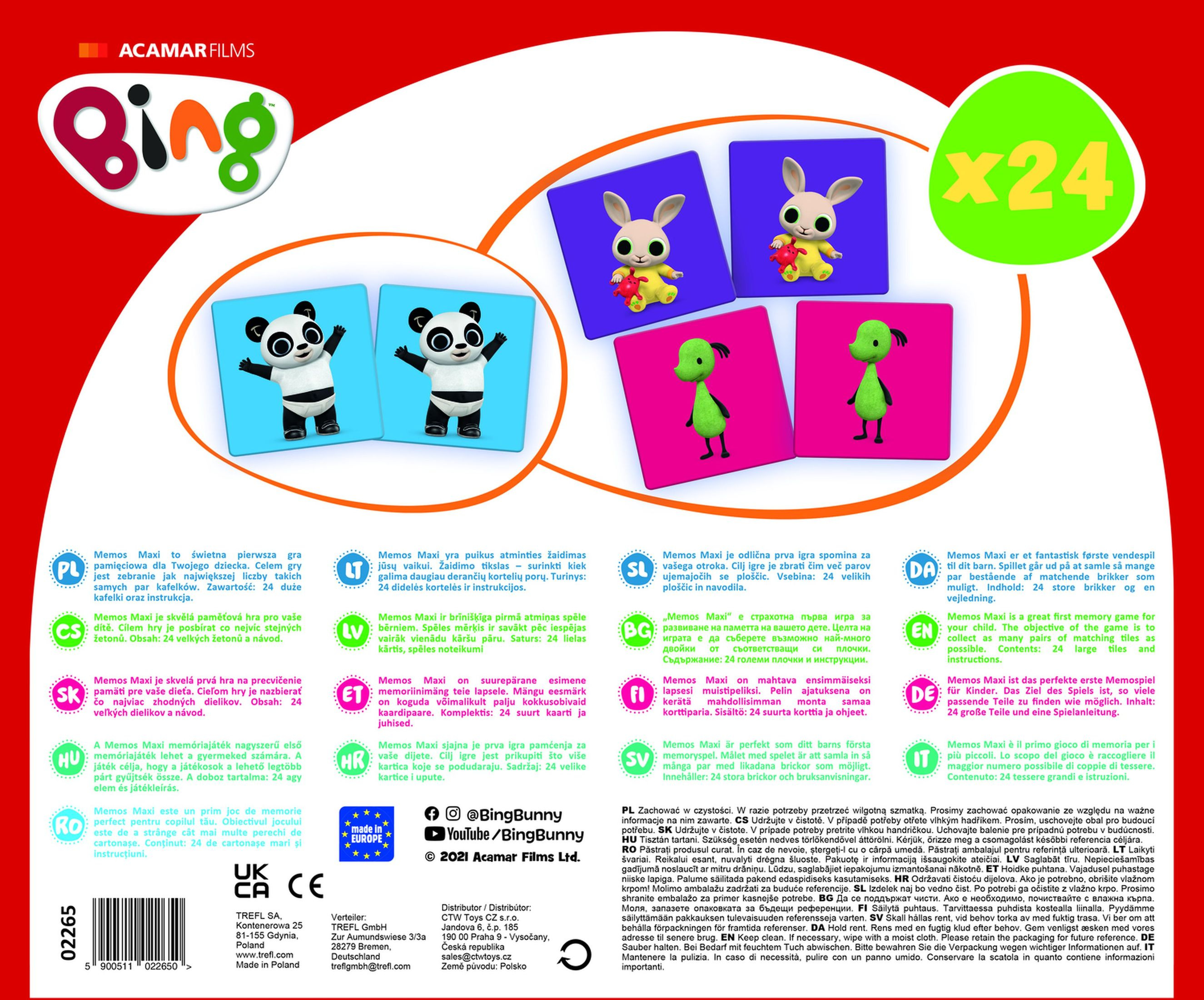 Pexeso Maxi Králíček Bing 24 kusů společenská hra v krabici 37x29x6cm 24m+
