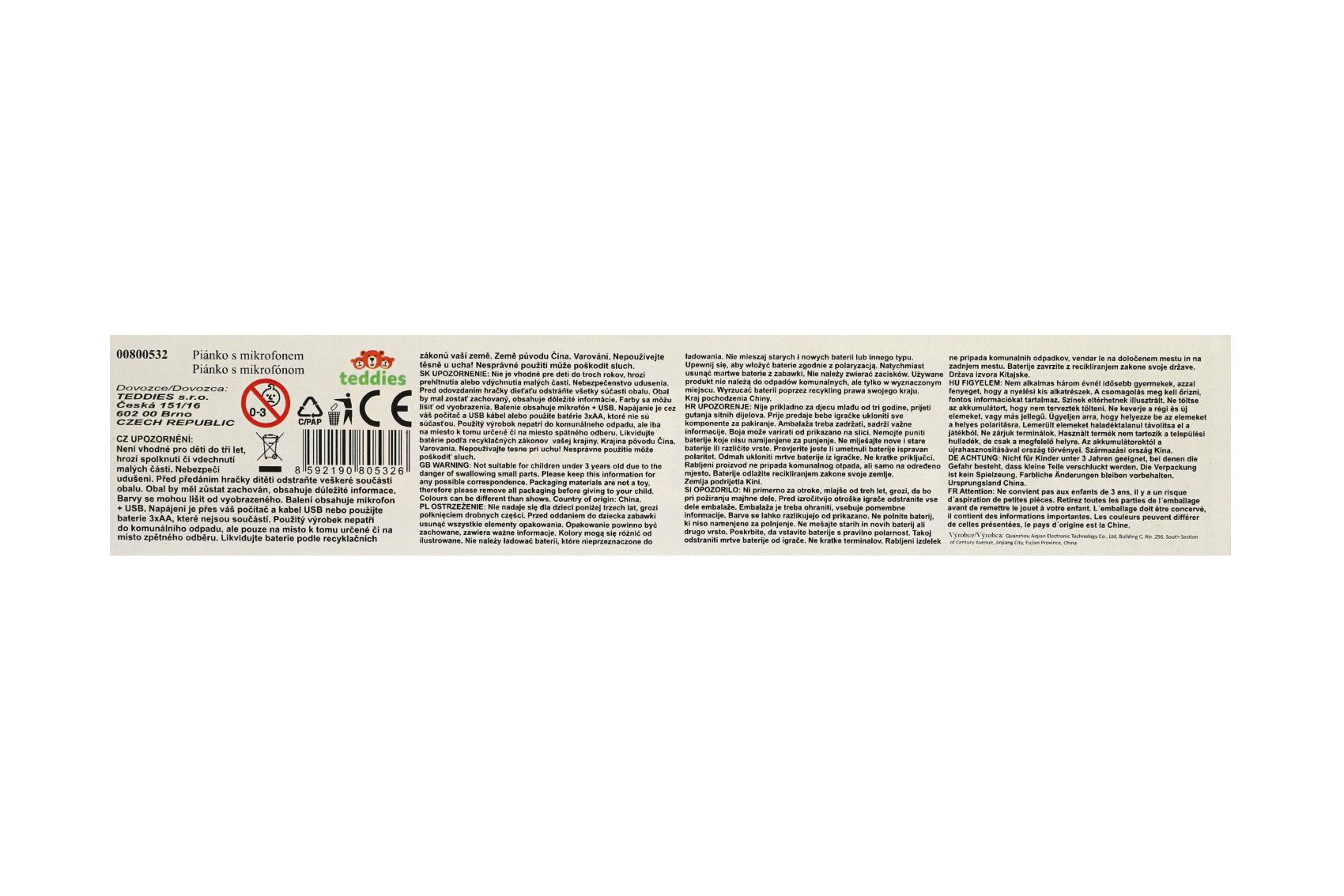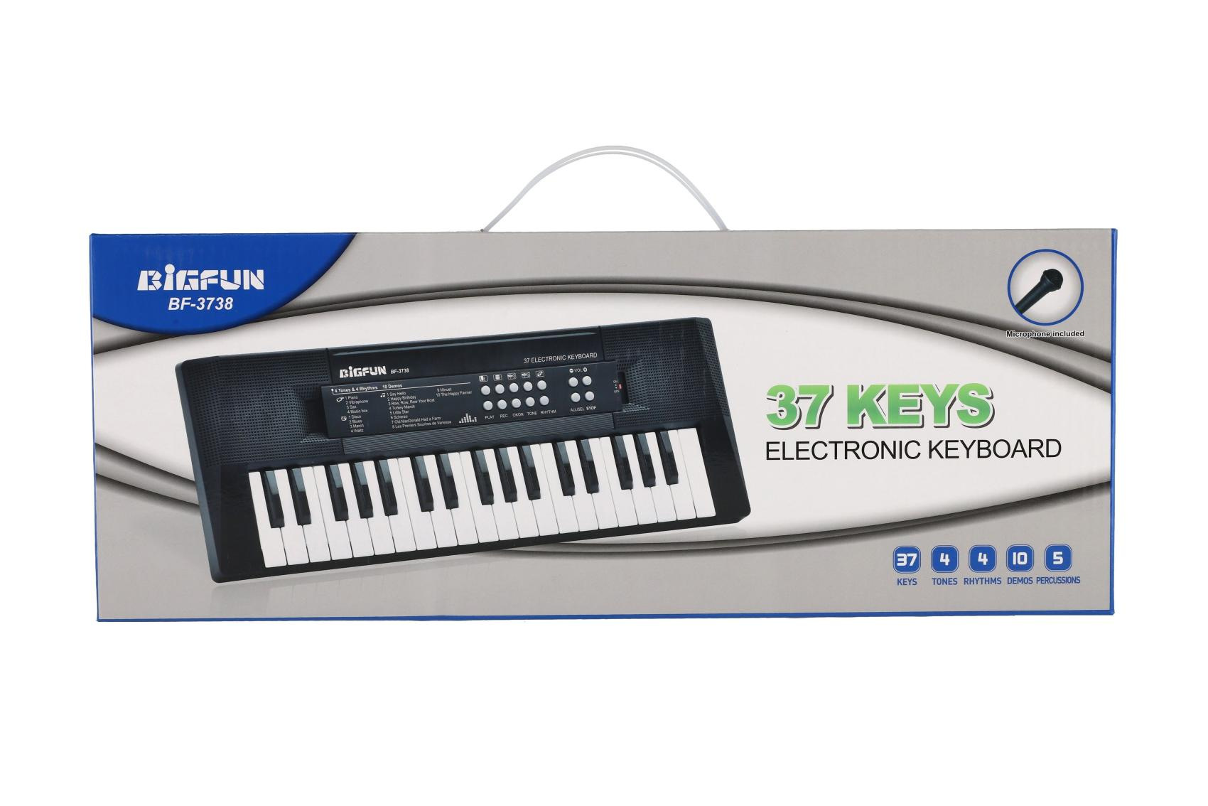 Pianko/Varhany/Klávesy 37 kláves plast 40cm napájení na USB + mikrofon v krabici 41,5x16x4,5cm