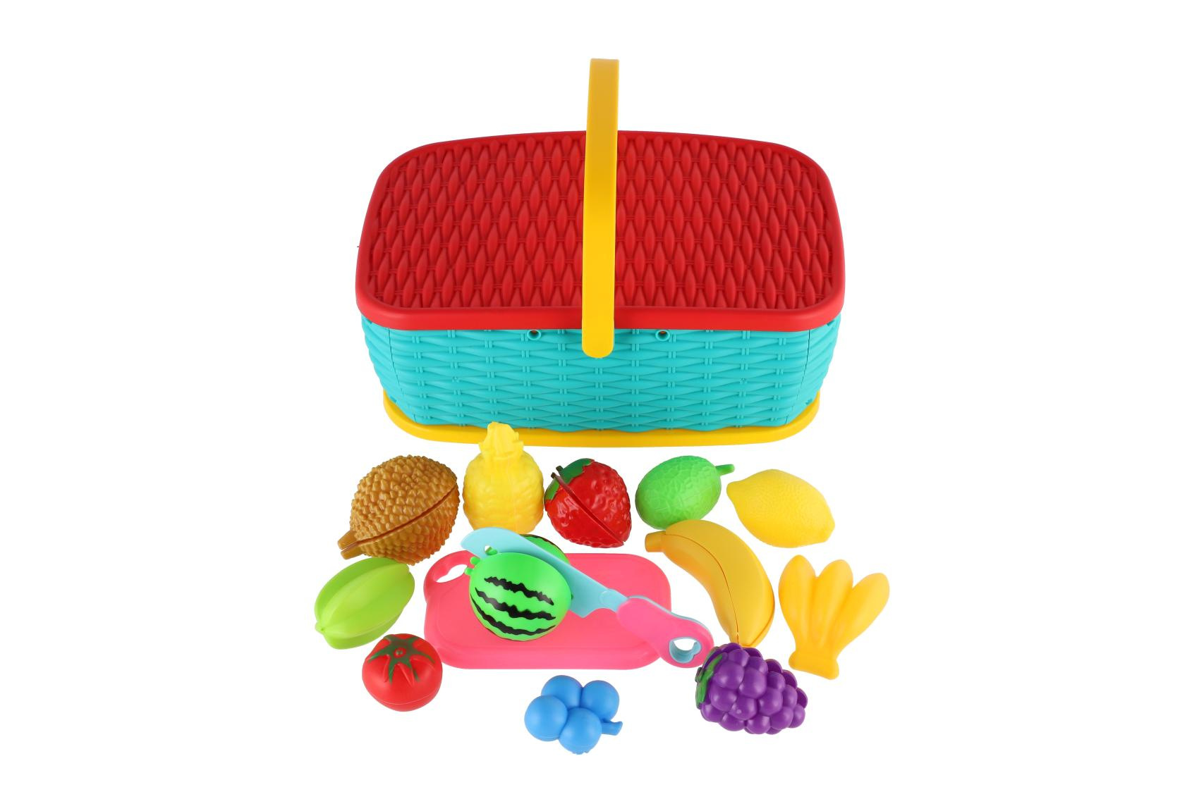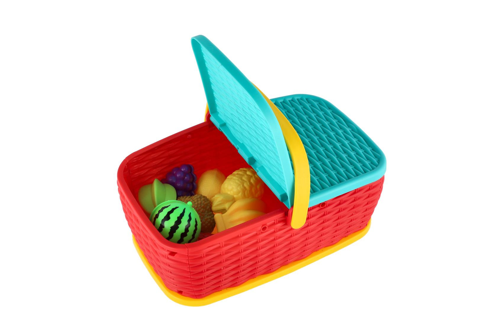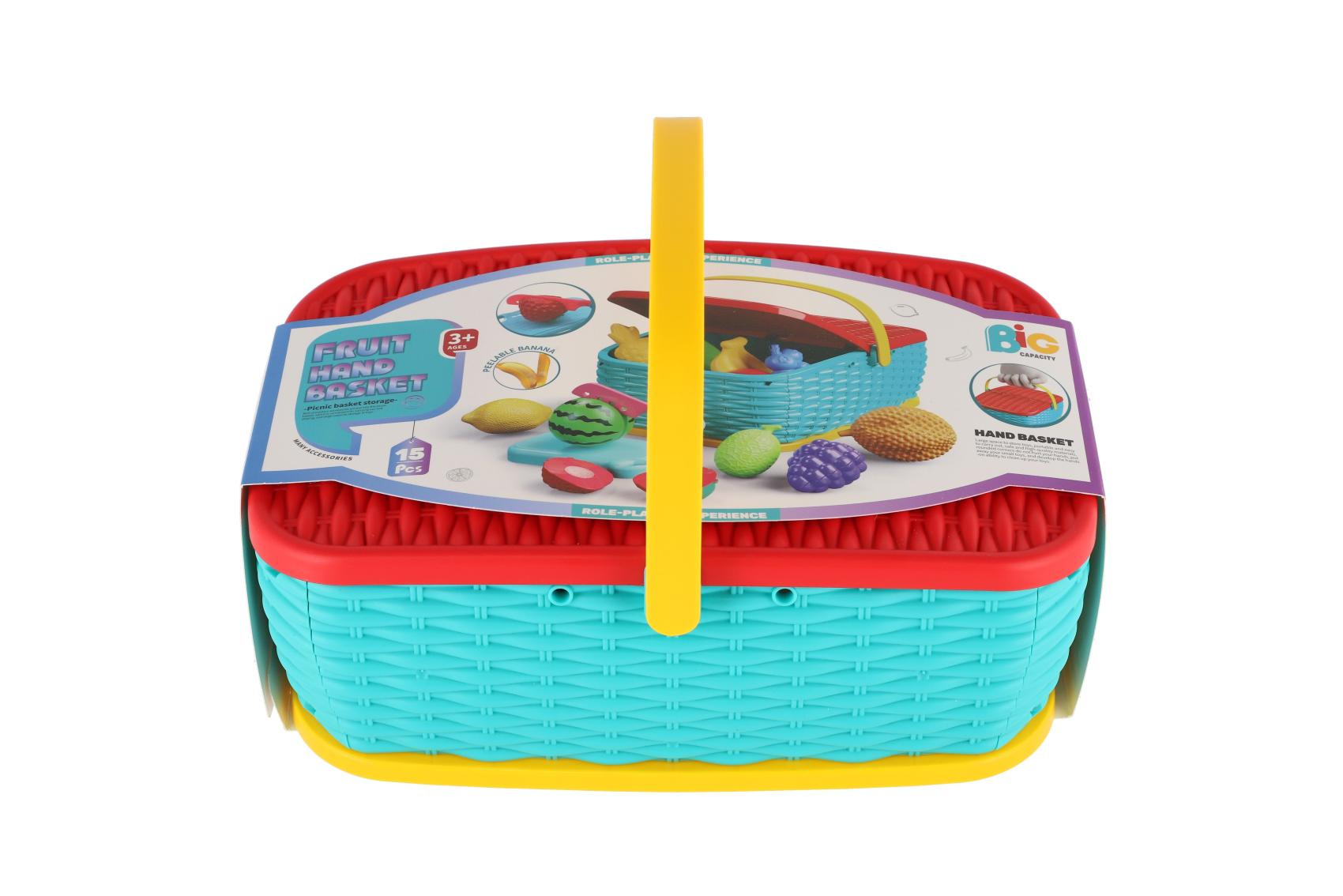 Hurá na piknik! Barevný plastový košík plný ovoce a zeleniny, které si děti mohou „nakrájet“ pomocí bezpečného plastového nože. Jednotlivé kousky jsou spojeny suchým zipem a lze je znovu a znovu spojovat. Skvělá hračka pro rozvoj jemné motoriky, fantazie i hry na kuchaře. Rozměr balení: 28 × 20 cm Vhodné pro děti od 3 let