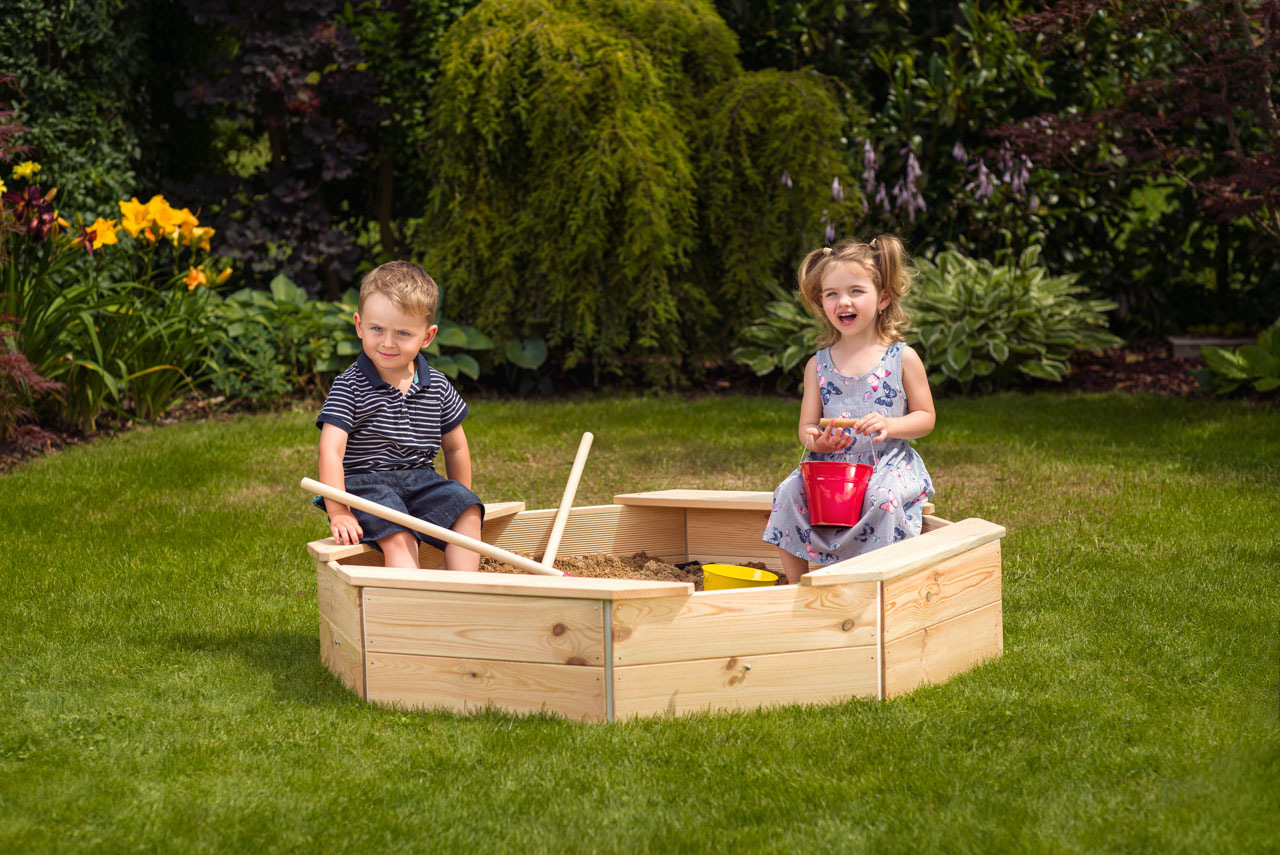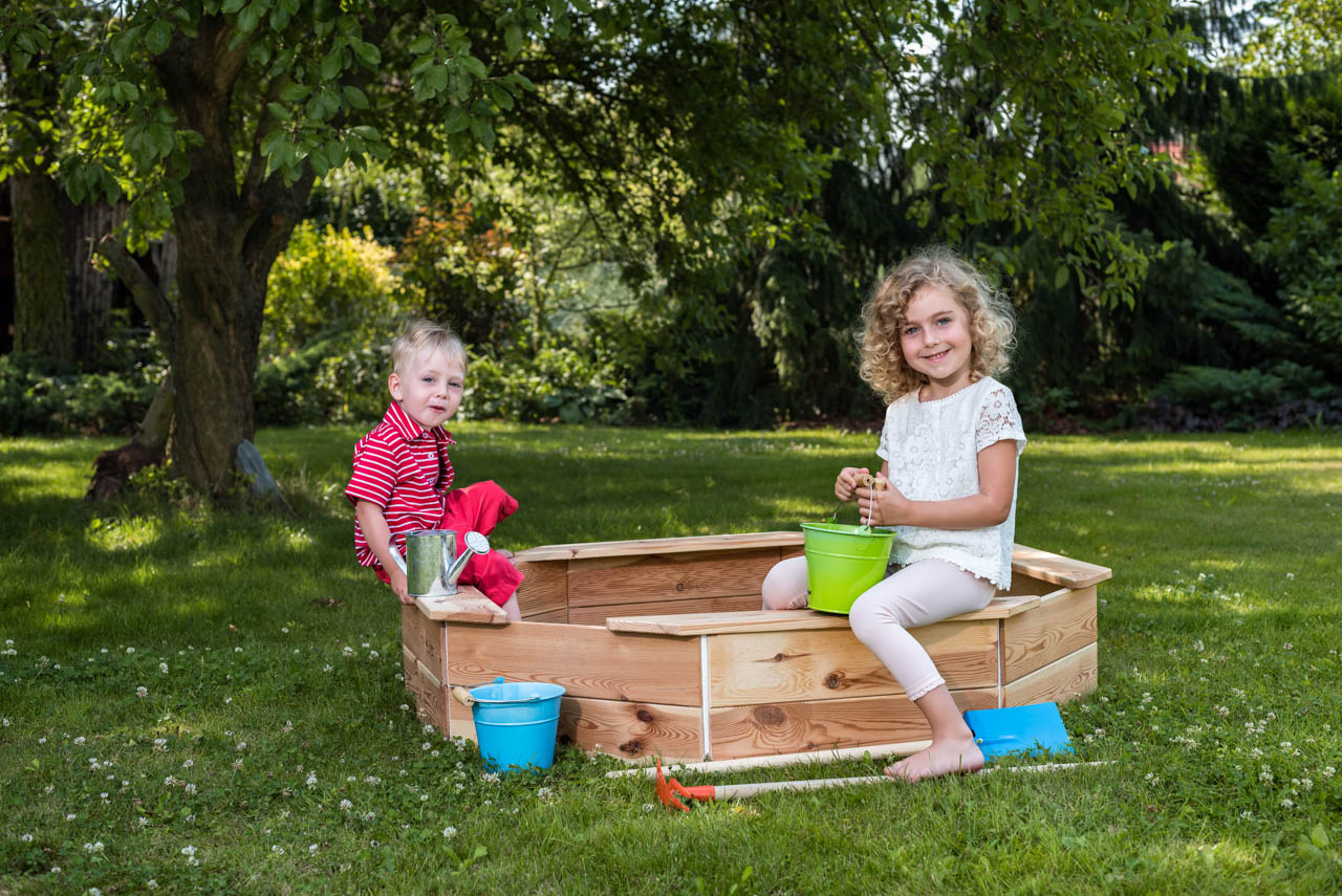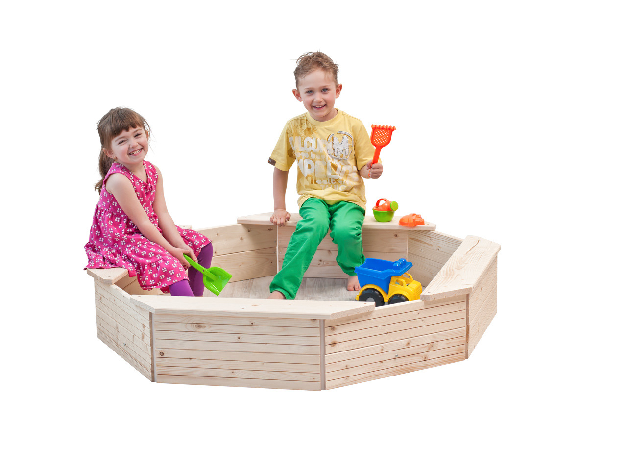 Pískoviště z masivního dřeva je vybaveno víkem, které chrání písek před zvířaty, spadaným listím a jinými nečistotami v době, kdy si v něm děti nehrají. Pokud si děti na pískovišti zrovna hrají, je víko otevřeno a promění se v lavičky, které umožní pohodlné sezení při hře.| Rozměr: 120 x 113 x 19 cm | Rozměr rozložená výška s lavičkou: 120 x 113 x 39 cm / Věk: 3+