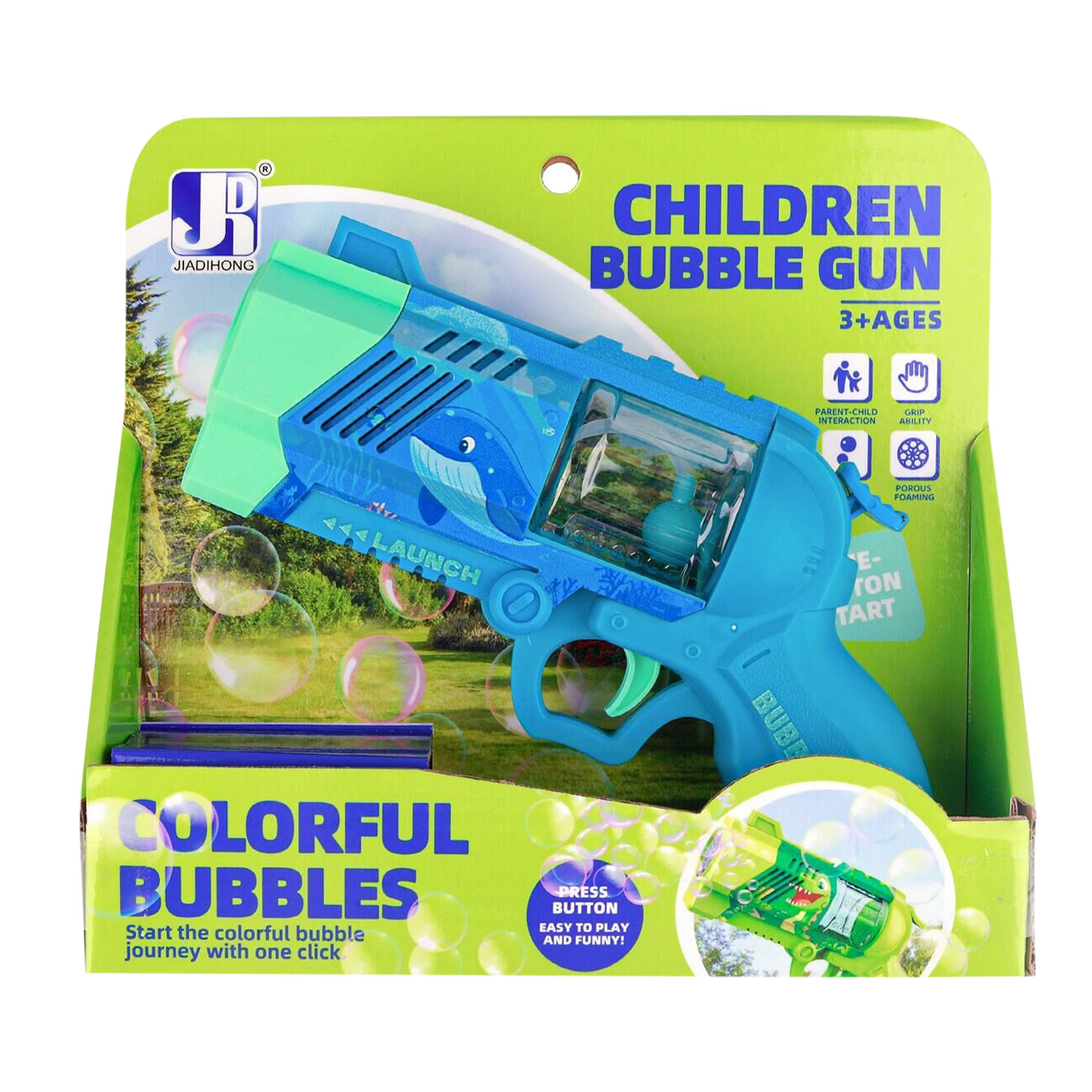 Užijte si tisíce bublinek vystřelujících z této senzační pistole. Ideální pro hru venku nebo v interiéru. Pistole funguje na 4 ks baterí typu AA, které nejsou součástí balení. Do zásobníku v pistoli nalejte náplň s bublifukem a zábava může začít! Náplň není součástí. Při zmáčknutí spouště se začnou vypuštět bubliny spolu se světelným efektem.