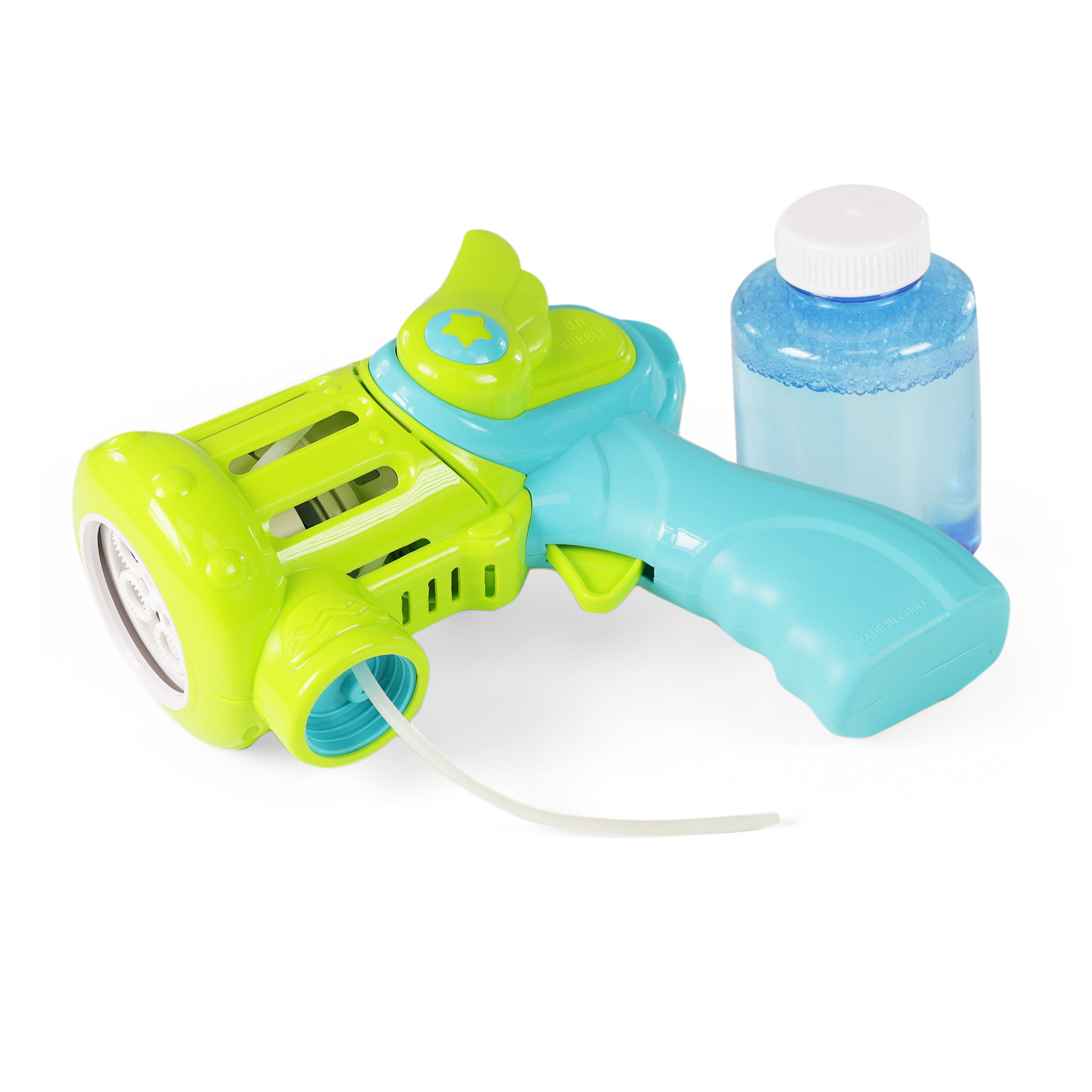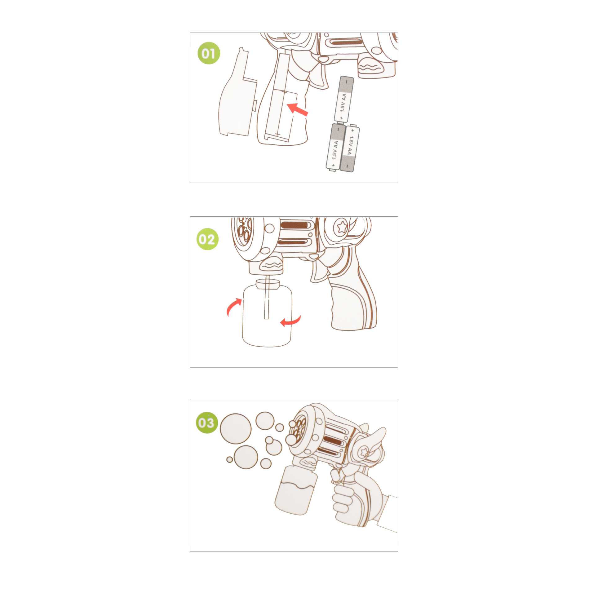 Užij si miliony bublinek vystřelujících z této senzační pistole. Ideální pro hru venku nebo v interiéru. Pistole funguje na 3 ks baterí typu AA, které nejsou součástí balení. Našroubuj zásobník, doplňte bublifuk a zábava může začít! Tekutina není součástí balení.