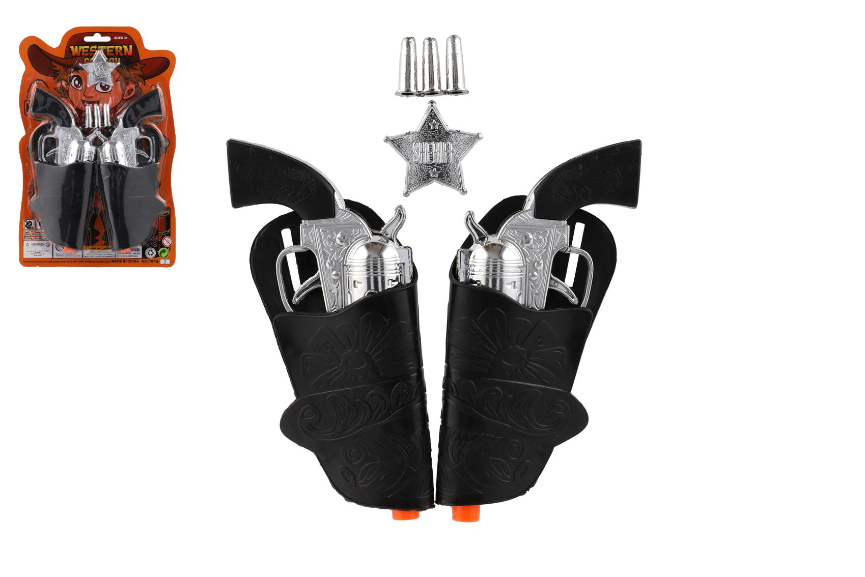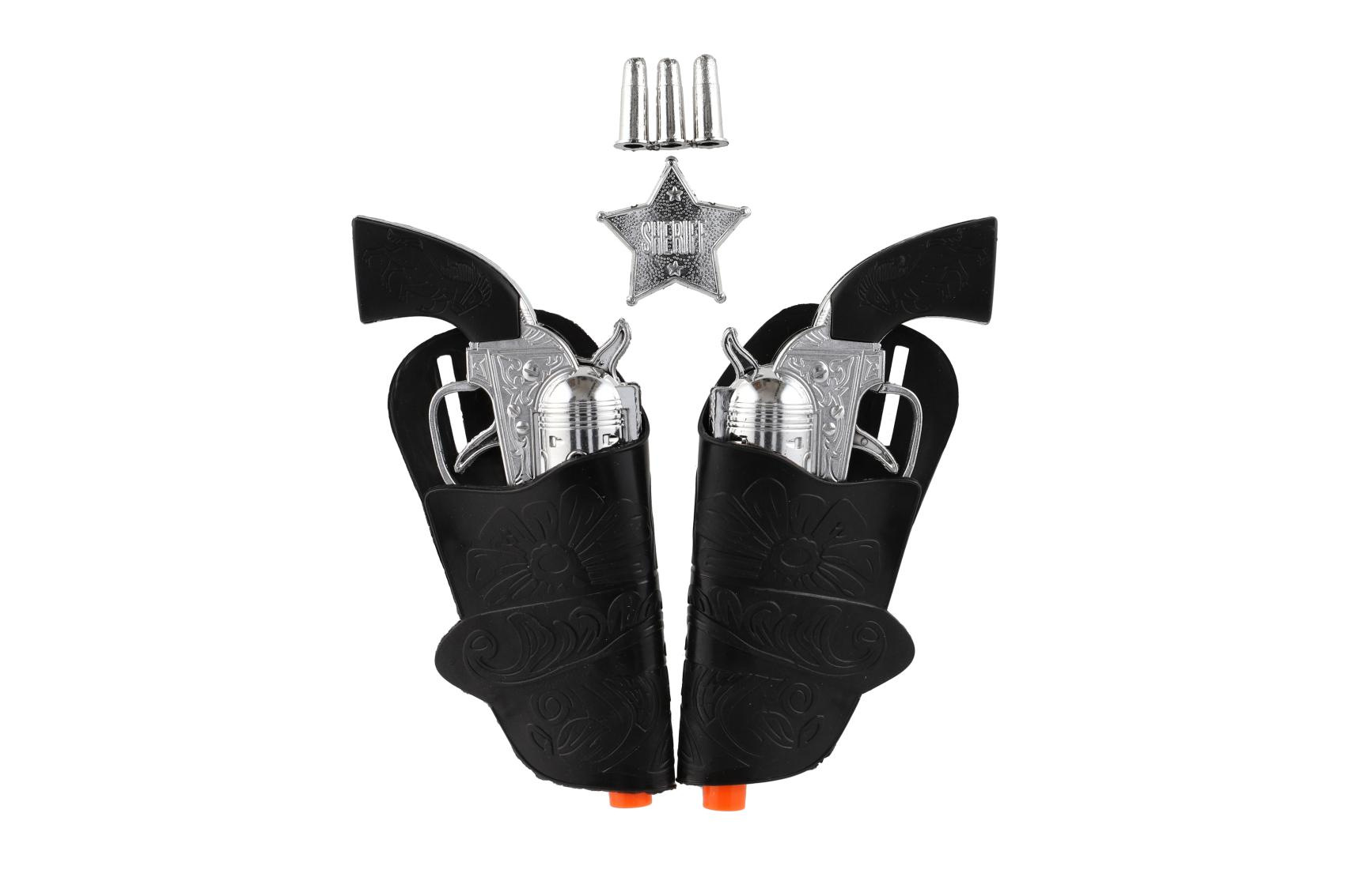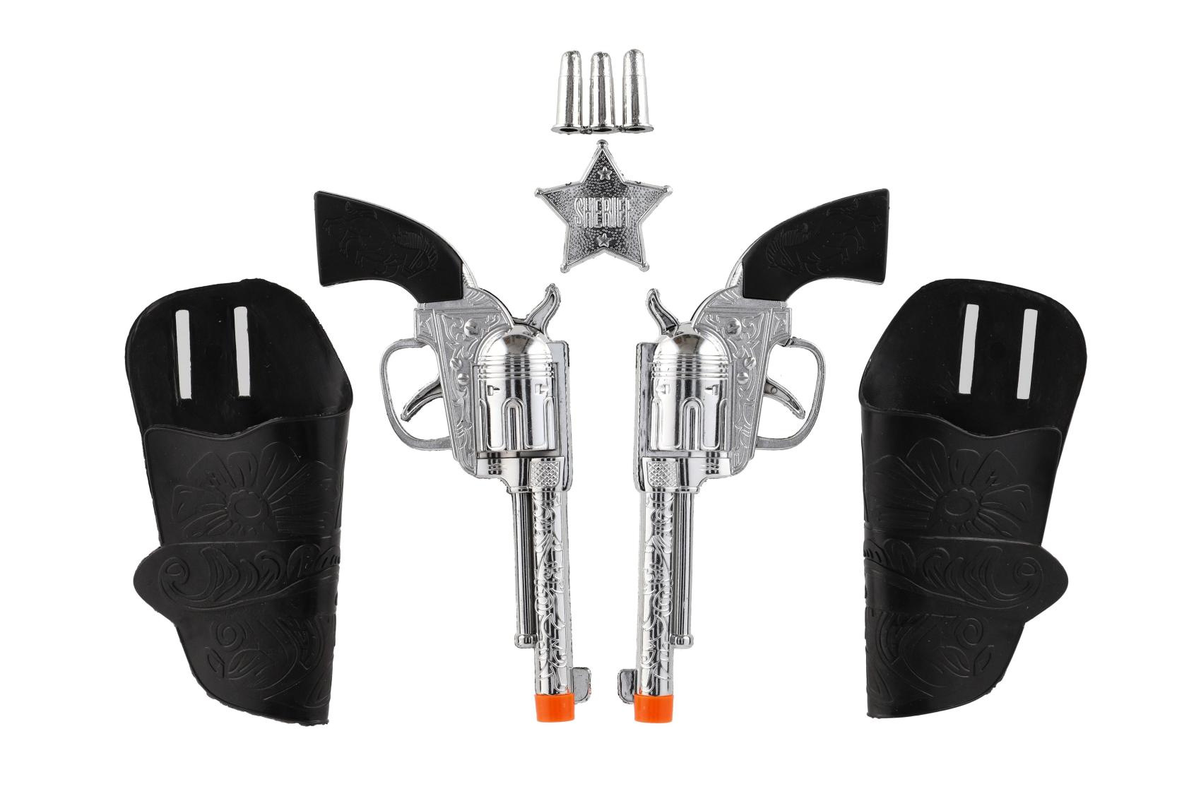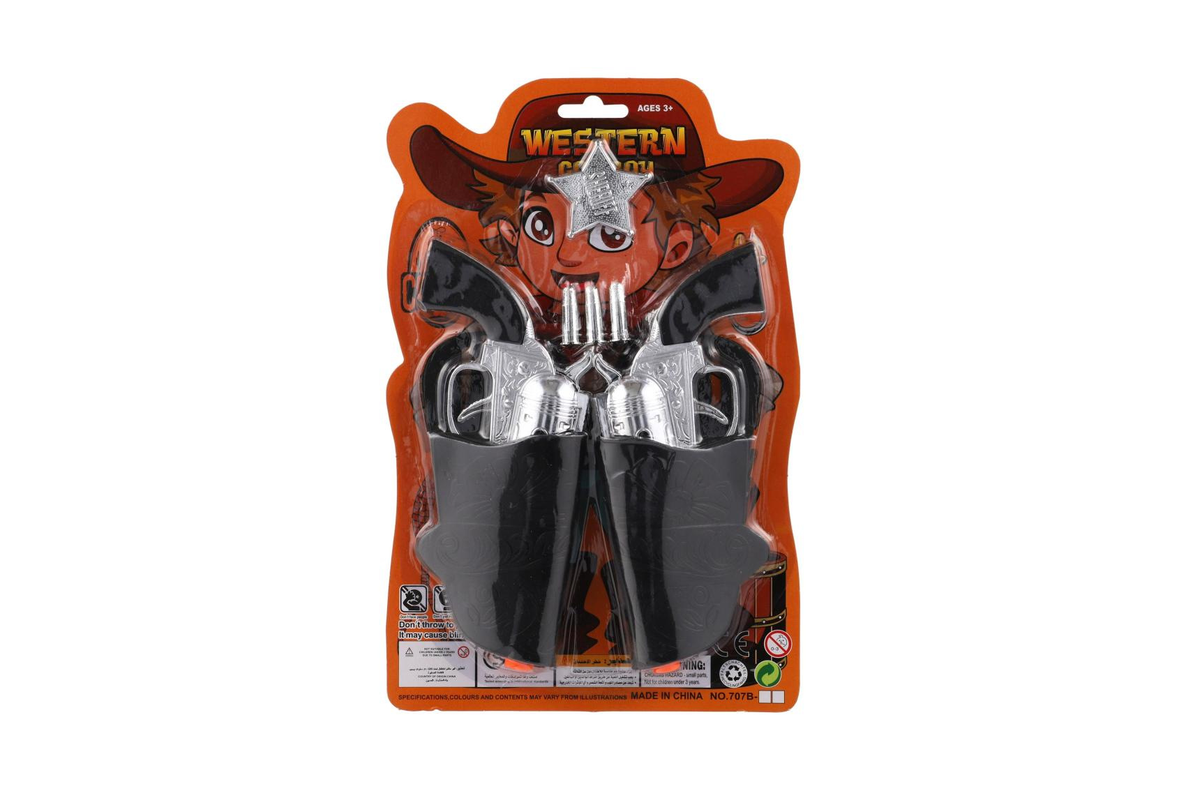 Pistole/kolt klapací s pouzdrem 2ks kovbojská sada plast s doplňky na kartě 19x29cm