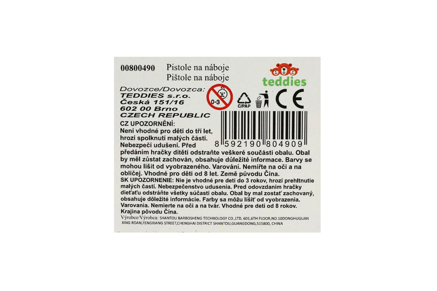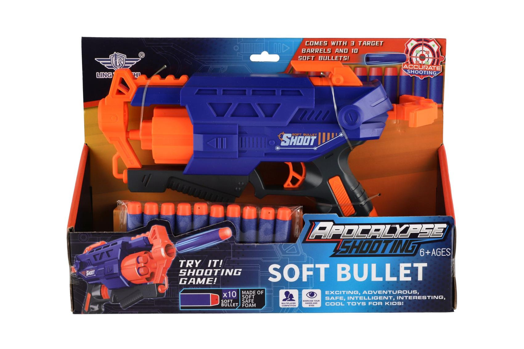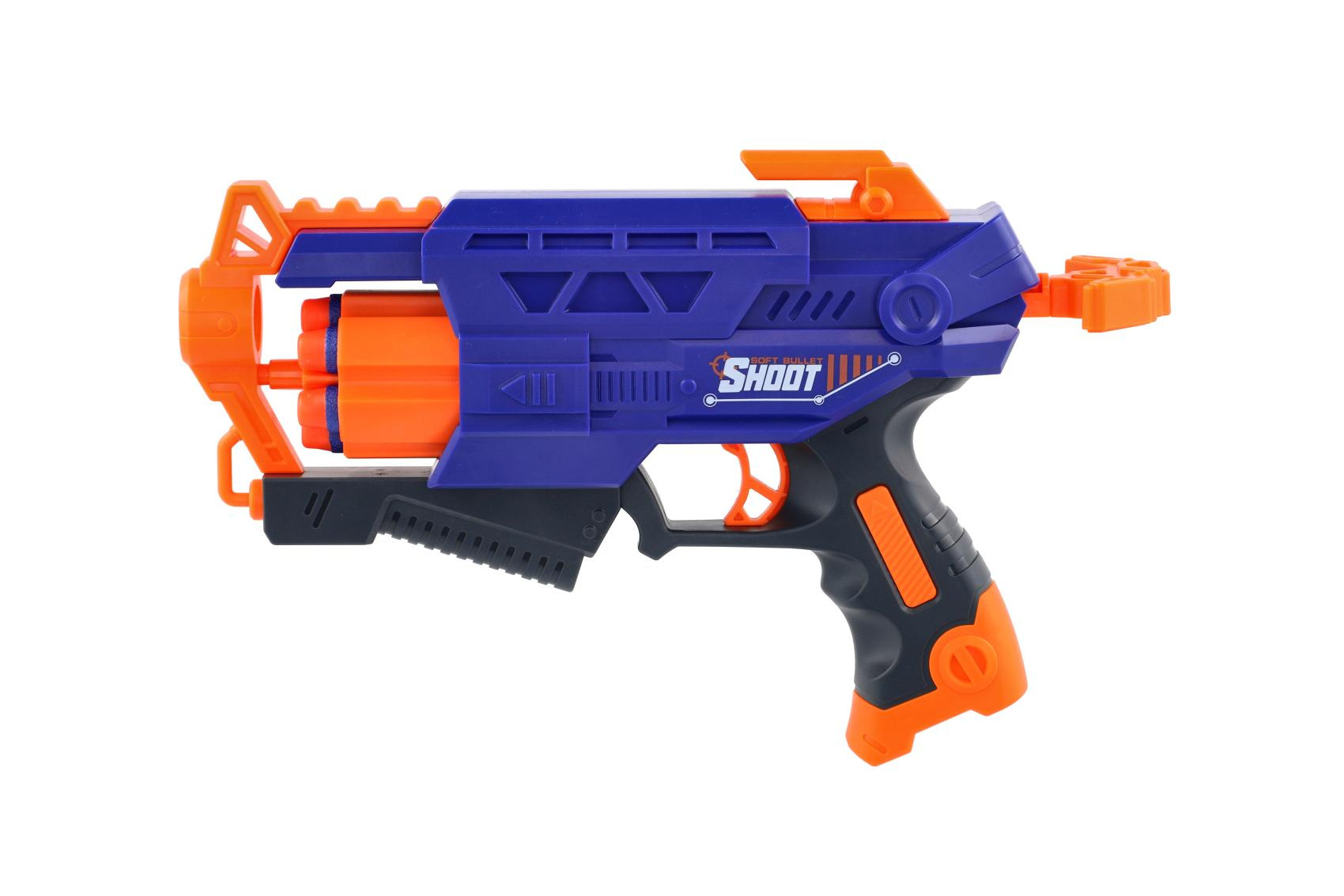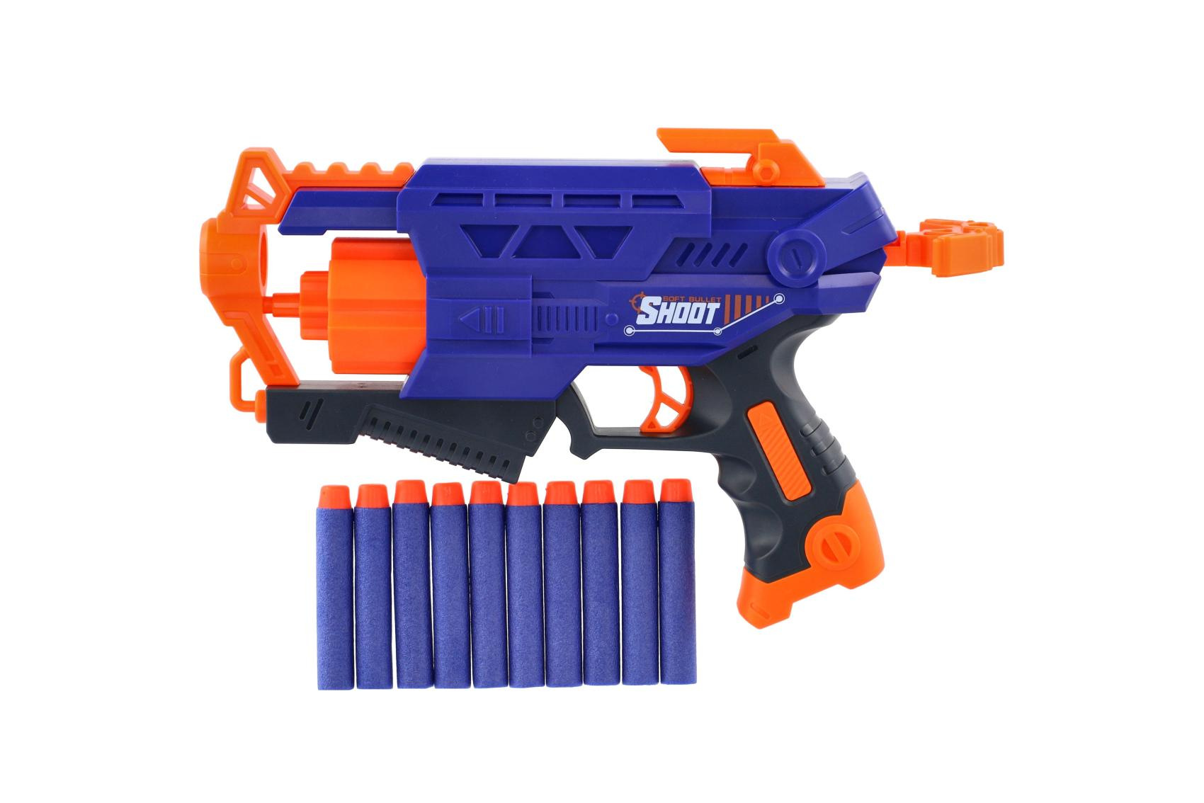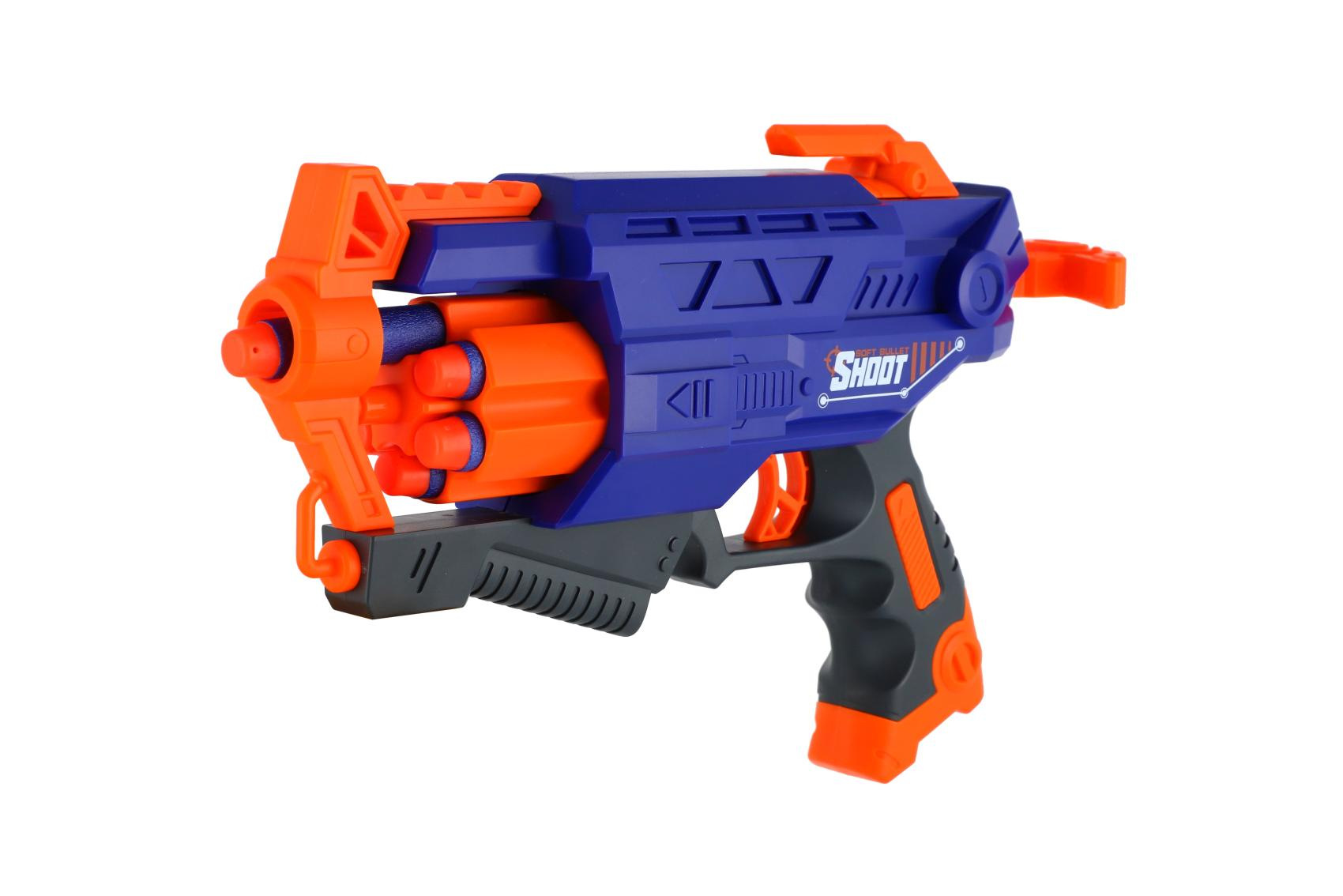 Pistole na pěnové náboje 28cm plast + 10 ks nábojů v krabici 31x22x7cm