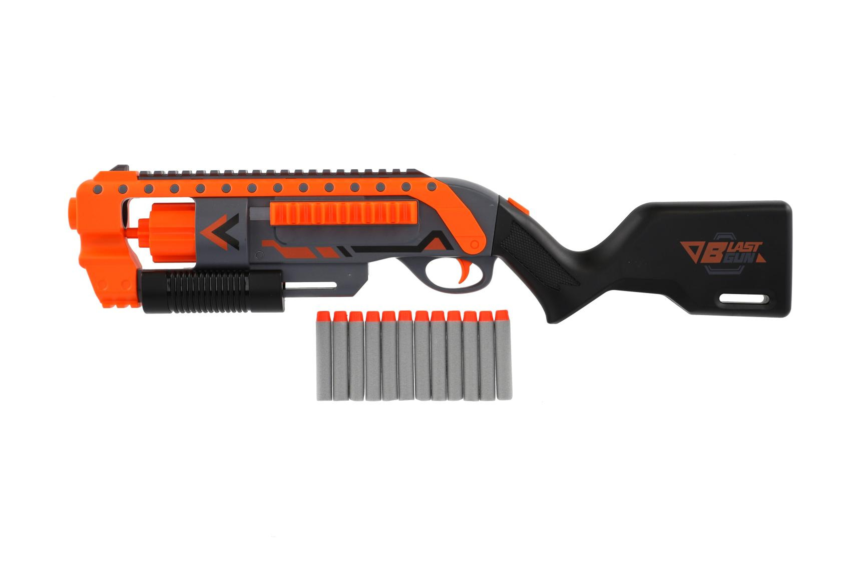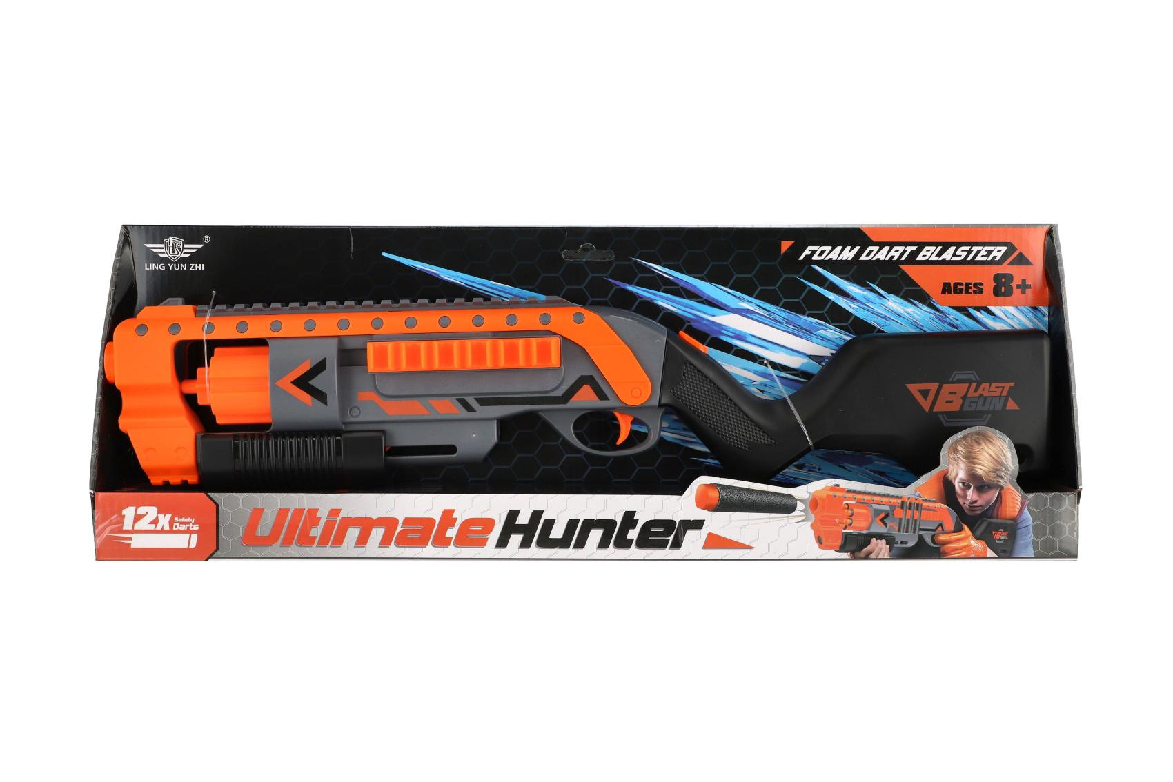Pistole na pěnové náboje 57cm plast + 12ks nábojů v krabici 58x20x7cm