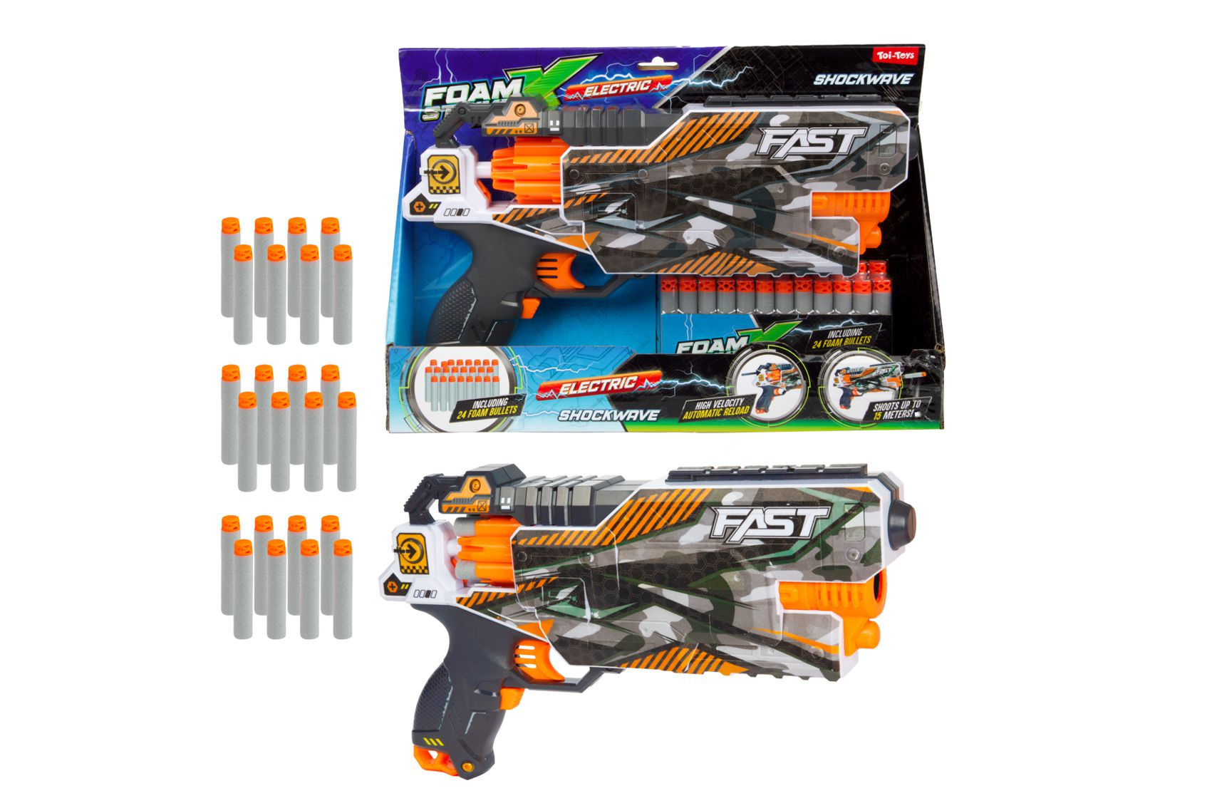 Pistole na pěnové náboje + náboje 24ks plast 35cm na baterie se zvukem v krabici 36x26x6,5cm