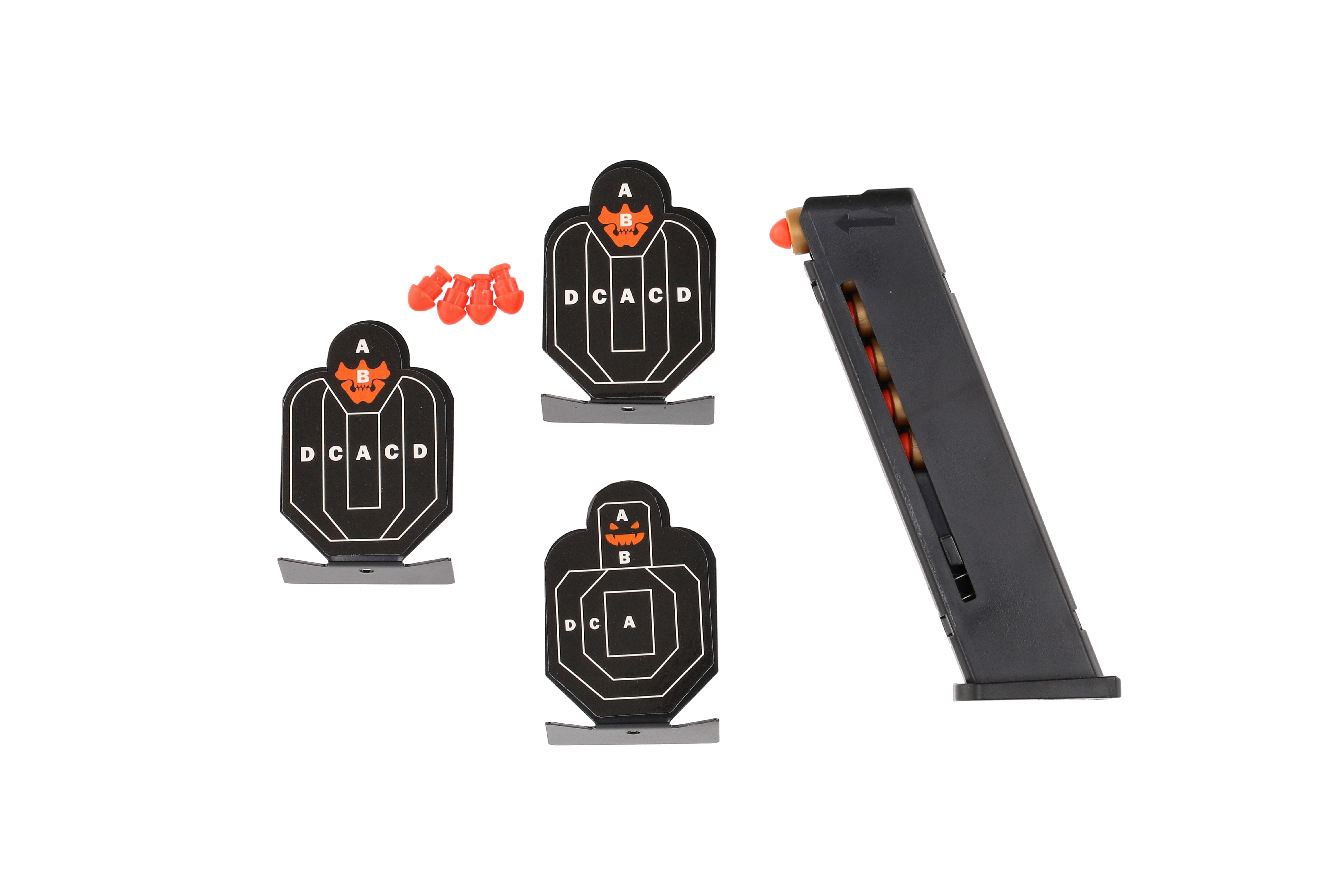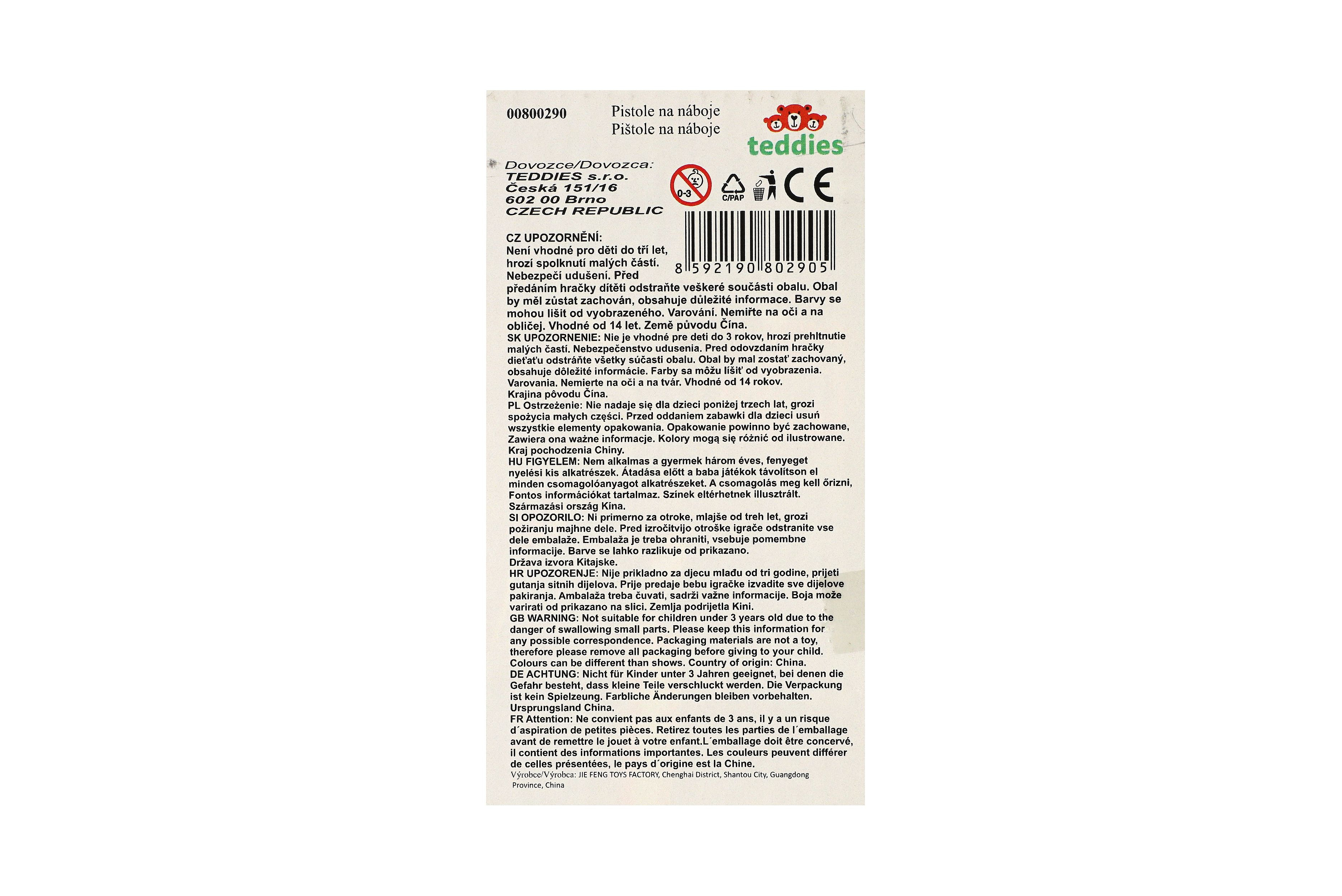 Pistole na pěnové náboje plast 19cm + terče 3ks, náboje 6ks v krabici 34x18x4,5cm