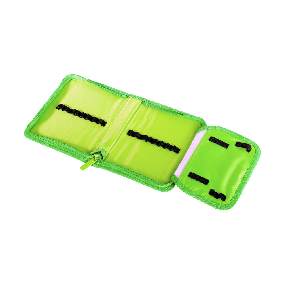Jednopatrový školní penál s jednou klopou je vybaven šestnácti klasickými gumovými úchyty na pero, pastelky nebo fixy a čtyřmi širšími úchyty na pravítko, kružítko či nůžky. Přes celou šířku klopy je kapsa z průhledné folie ideální pro umístění rozvrhu hodin. Penál je vyrobený ze 100 % polyesteru v kombinaci se silikonem. Polstrování spolehlivě chrání obsah penálu při nárazech a pádech. Zapínání je na zip s velkým taháčkem, který umožňuje dětem snadné otvírání a zavírání penálu. Na přední straně najdete čtvercový silikonový PIXIE CREW creative panel TM zelené barvy o velikosti 10 x 10 bodů. Máte tedy k dispozici 97 pozic pro nekonečné množství motivů na každý den díky PIXIES (pixelům), které můžete kdykoli sundat a vyměnit za jiné. Ke každému penálu přikládáme balíček s cca 50 pixely. Poznámka: Nejedná se o oficiální produkt Minecraft licence. Rozměry balení: 19 x 14,5 x 2,7 cm. Věk: 6+