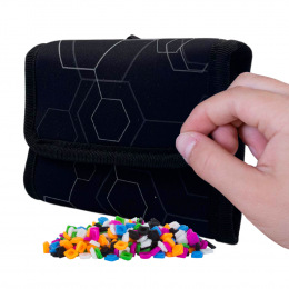 Víceúčelové malé pouzdro pro každodenní použití. Pouzdro je vyrobeno z kombinace praktického silikonu, který chrání obsah pouzdra při nárazech a pádech, a stylové látky. Velmi snadno se udržuje, stačí jednoduše otřít vlhkým hadříkem nebo houbičkou. Pouzdro je v horní části uzavíratelné na zip a po straně na poutku je připevněna karabina. Vnitřní prostor je vhodný na drobnosti denní potřeby jako např. kosmetické potřeby, kreditní karty, peníze, klíče a jiné drobnosti. Na přední straně je umístěn unikátní silikonový PIXIE CREW creative panel TM černé barvy, šestiúhelník, k dispozici máte tedy 83 bodů pro nekonečné množství motivů na každý den díky PIXIES (pixelům), které můžete kdykoli sundat a vyměnit za jiné. Ke každému pouzdru zdarma přikládáme balíček přibližně 50 ks malých PIXIES (pixelů). Rozměry balení: 10 x 10 x 2 cm. Věk: 5+