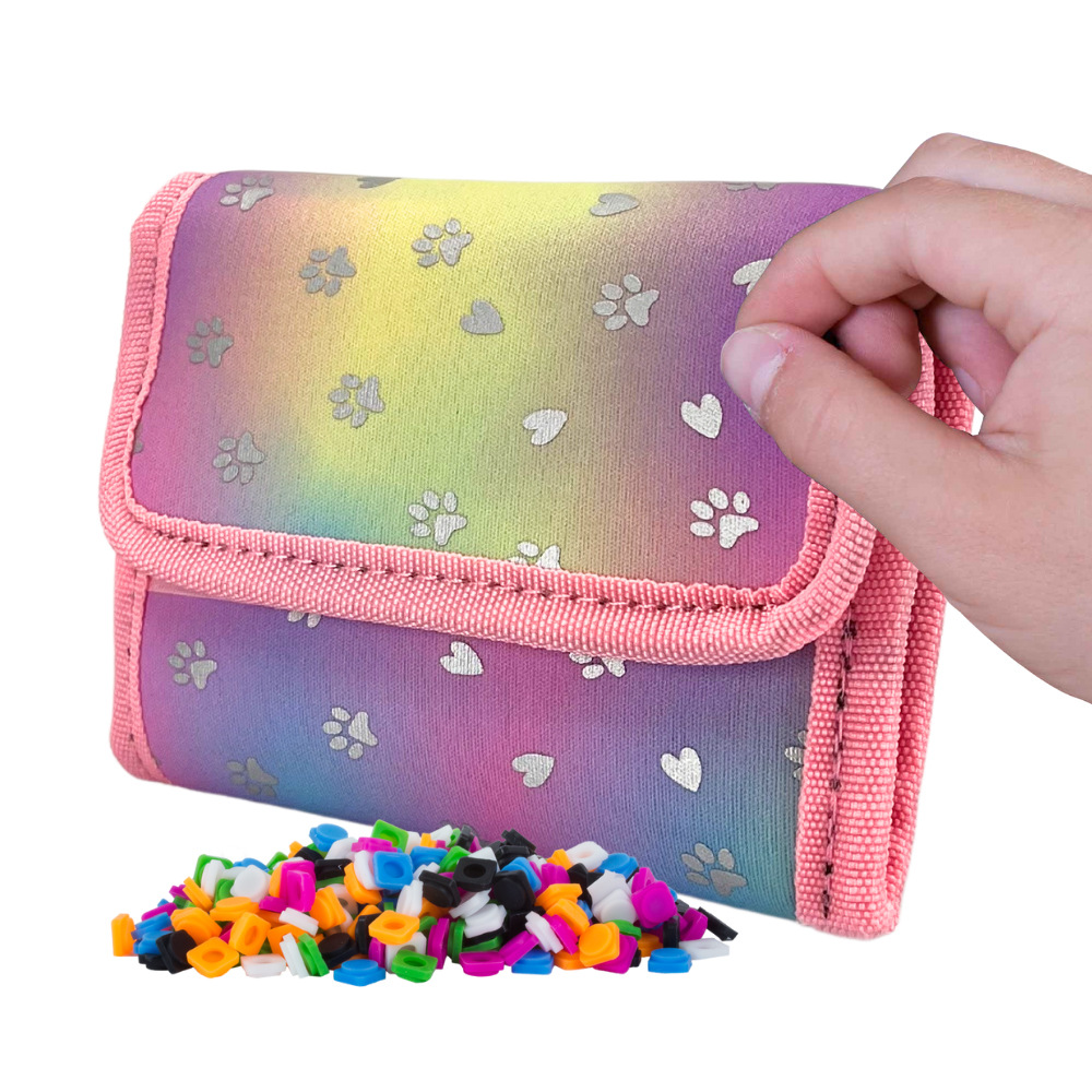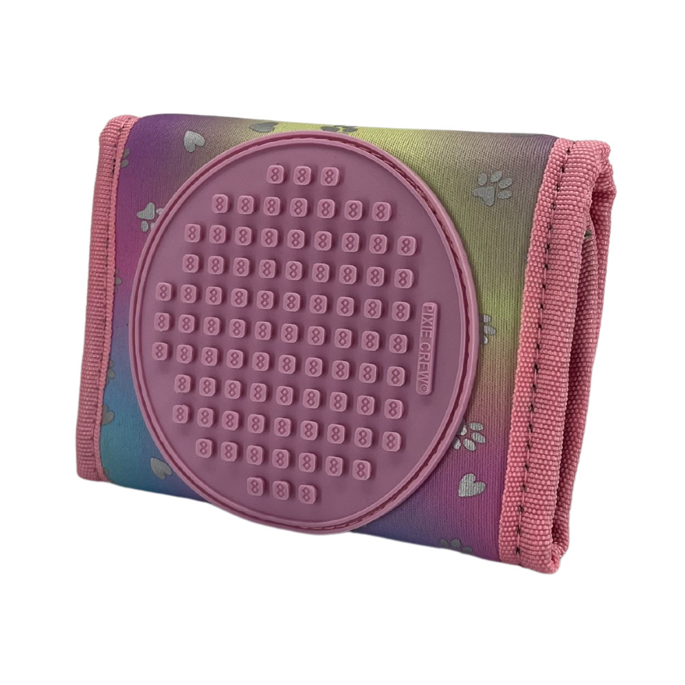 PIXIE CREW peněženka z kolekce Enchanted hearts & paws je perfektním řešením pro každého, kdo hledá stylový, praktický a zábavný doplněk. S designovou koncepcí stylu spirálek, je tato peněženka skvělou volbou pro všechny děti a teenagery, které se chtějí vyjádřit svým vlastním způsobem a projevit svůj jedinečný styl. Peněženka je vybavena růžovým PIXIE CREW panelem s 86 body, které umožňují osobní personalizaci. Díky PIXIE CREW pixelům si děti mohou vytvořit jedinečný design, který odpovídá jejich představám a vkusu. Peněženka se zapíná na dva suché zipy, což zajišťuje bezpečné uzavření a ochranu všech cenností uvnitř. Vnitřek peněženky je prakticky uspořádaný. Nabízí kapsu na mince se zipem, která zabraňuje jejich ztrátě. Dále obsahuje dostatek prostoru pro uskladnění platebních karet, průkazek a také prostor na bankovky. Vše je přehledně uspořádáno a snadno přístupné. Peněženka je navíc zabalená v dárkové PET designové krabičce, čímž se stává skvělým dárkem pro všechny malé i velké m