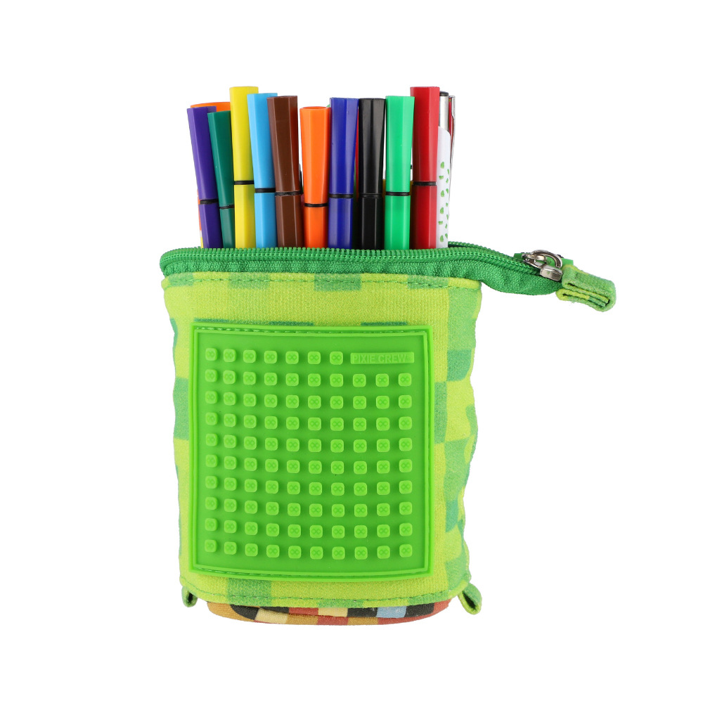 PIXIE CREW Pop-Up Penál: "Tento inovativní 'pop-up' penál od PIXIE CREW je jedinečnou kombinací zipové kapsy a samostatného stojanového penálu. Po sesunutí vrchního obalu dolů se transformuje na volně stojící obal, který poskytuje snadný přístup k psacím potřebám. Tento design nejen usnadňuje organizaci a výběr potřeb, ale také zajišťuje, že všechny nástroje jsou bezpečně uloženy a ochráněny. Penál je ideální pro studenty, kteří ocení kombinaci funkčnosti, stylu a kreativního designu. Díky možnosti personalizace pomocí PIXIE CREW pixelů mohou studenti vyjádřit svou individualitu a přizpůsobit penál svým preferencím." Na přední straně je umístěn unikátní silikonový PIXIE CREW creative panel TM zelené barvy. 10x10 bodů pro nekonečné množství motivů na každý den díky PIXIES (pixelům), které můžete kdykoli sundat a vyměnit za jiné. Ke každému penálu zdarma přikládáme balíček přibližně 30 malých černých PIXIES (pixelů). Rozměr balení: 14x6x25cm. Věk: 6+