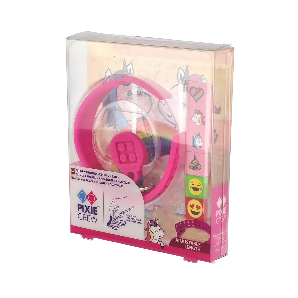 PIXIE CREW Sada Náramek, Klíčenka a Odznáček: "Tato stylová a praktická sada od PIXIE CREW je perfektním doplňkem pro každého, kdo chce přidat kreativní dotek ke svým osobním věcem. Sada obsahuje náramek, klíčenku a odznáček, které lze personalizovat pomocí PIXIE CREW pixelů. Náramek je skvělým módním doplňkem, zatímco klíčenka a odznáček nabízejí praktický způsob, jak přizpůsobit klíče nebo batoh. Všechny tři předměty jsou vyrobeny z vysoce kvalitních materiálů, což zaručuje jejich dlouhou životnost a odolnost." Rozměr balení: 11x13x2,7cm. Věk: 6+