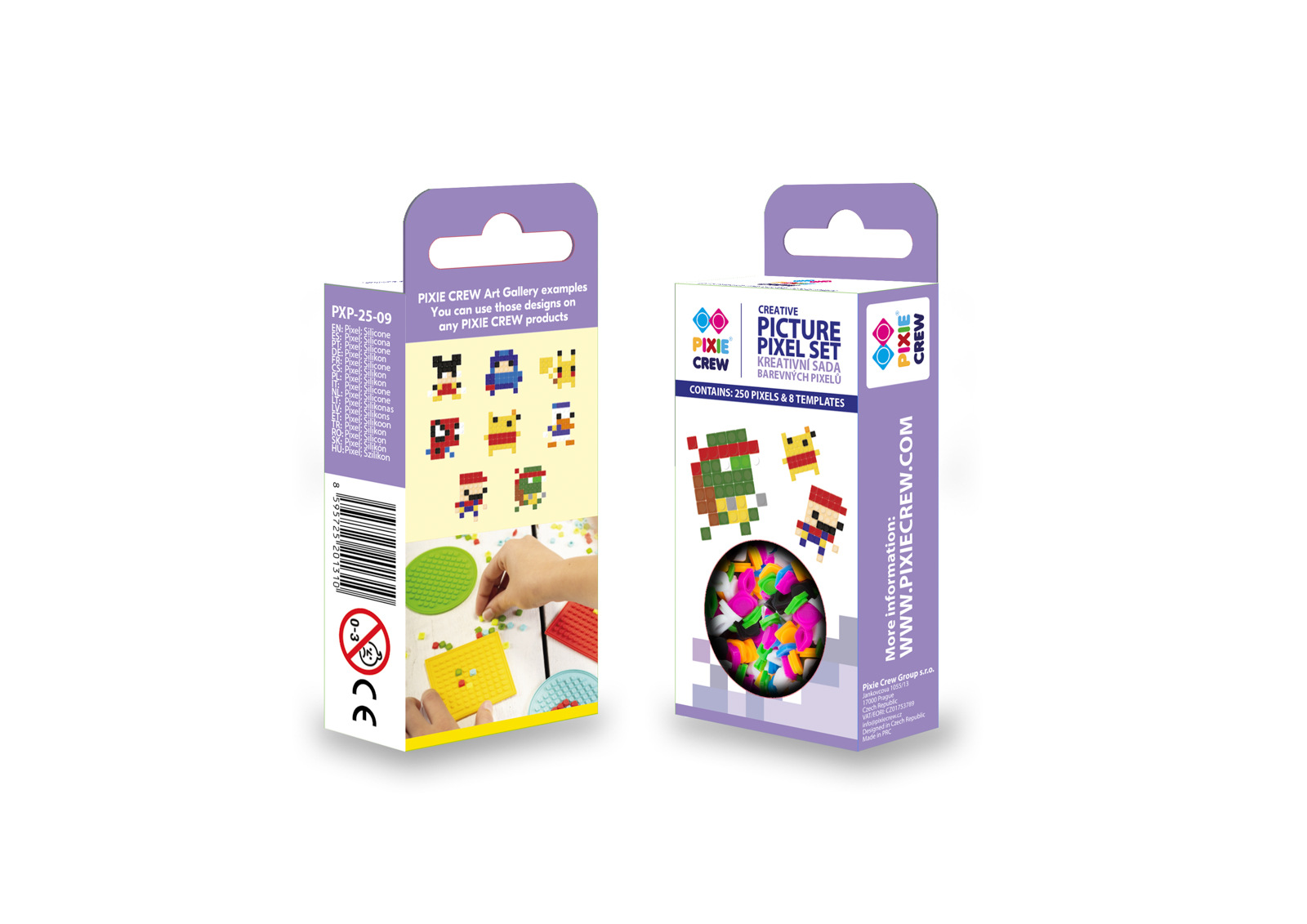 Kreativní sada PIXIE CREW obsahuje 250 barevných malých pixelů, které umožní dětem vytvořit celkem 8 obrázků oblíbených pohádkových postaviček. Patentovaný tvar pixelů zaručuje stabilní uchycení na silikonový panel se speciálně tvarovanými body. Pixely jsou vyrobeny z kvalitního silikonu. Kompatibilní s penály, poznámkovými bloky, batohy a dalšími doplňky PIXIE CREW. Rozměry balení: 10,5 x 4,5 x 2 cm. Věk: 6+