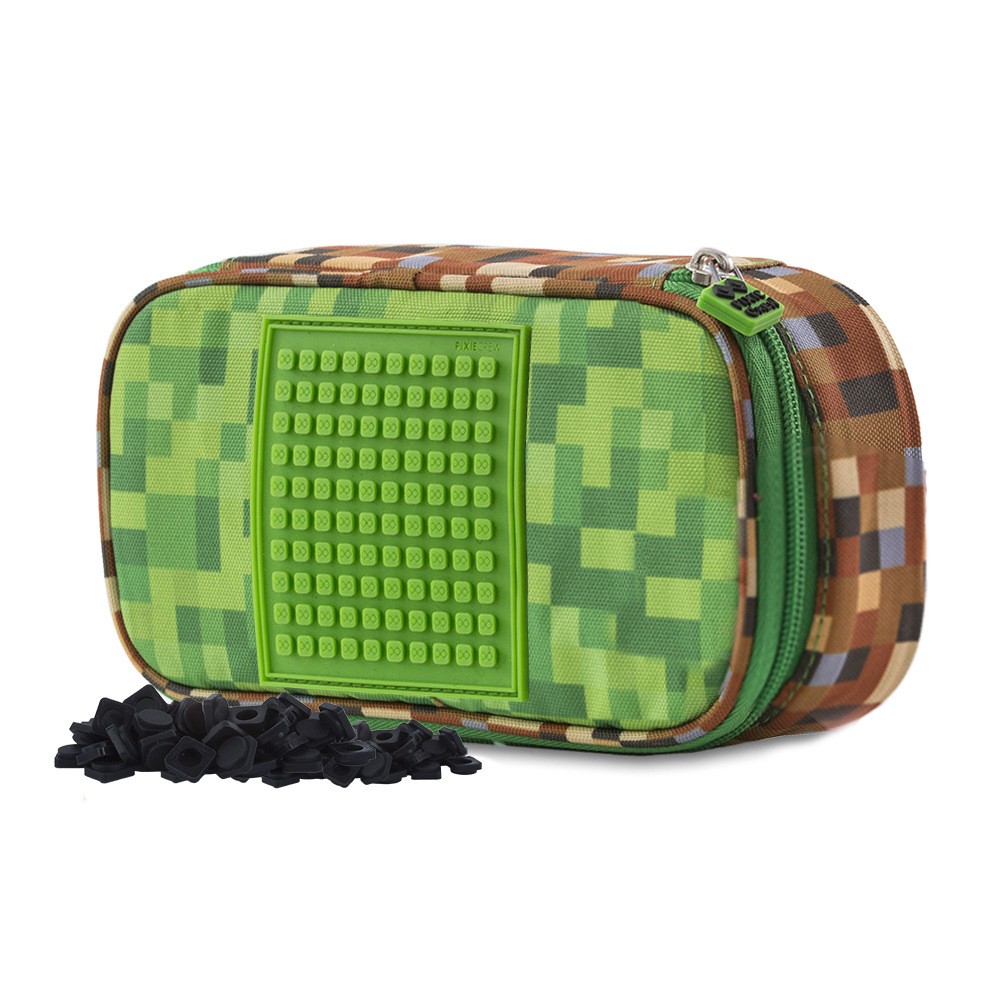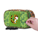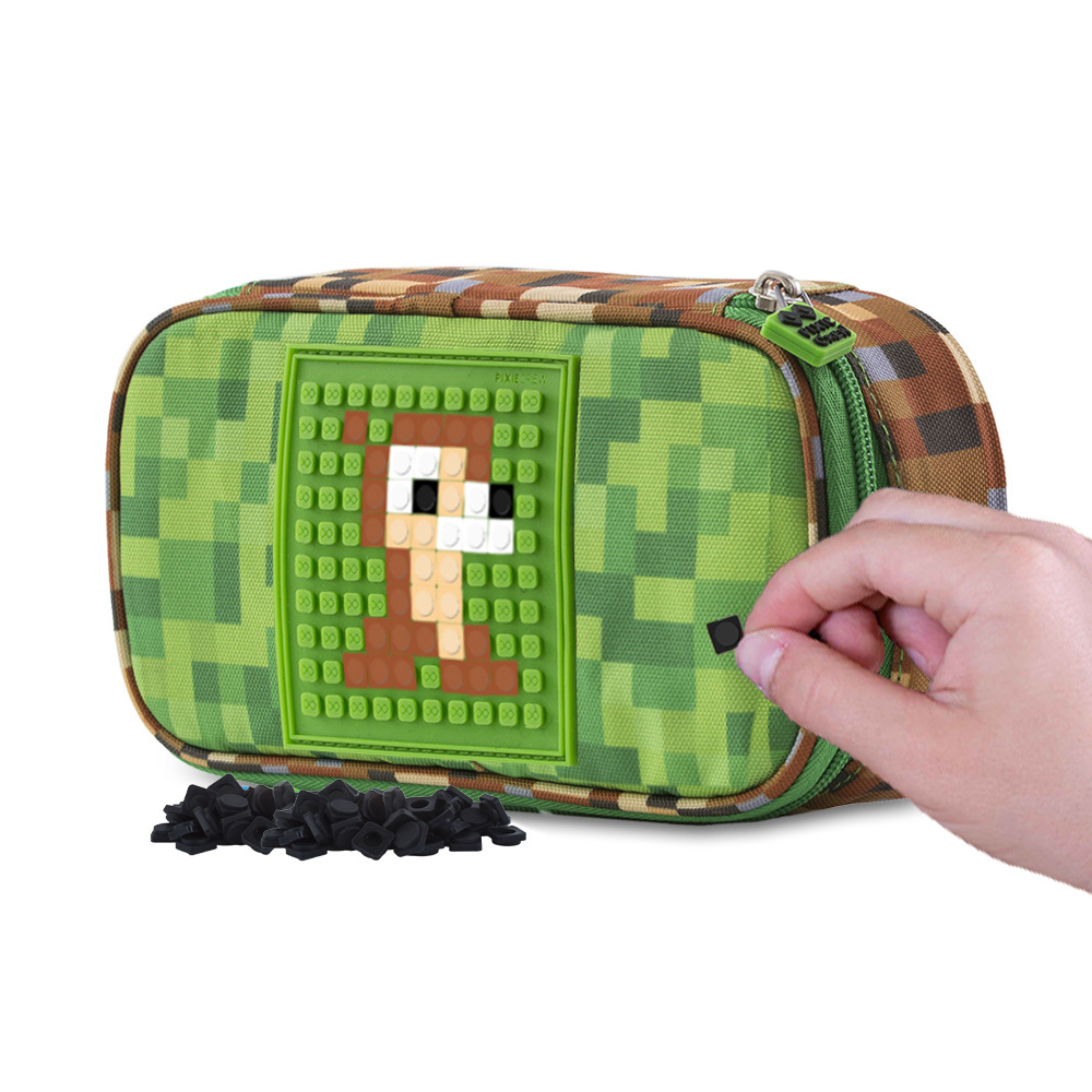 PIXIE CREW Patrový Oválný Penál: "Tento prostorný a stylový patrový oválný penál od PIXIE CREW je perfektně vybaven pro potřeby starších žáků. Díky dvěma patrům a vnitřnímu organizéru poskytuje dostatek místa pro uspořádání různých psacích potřeb, od per a tužek po zvýrazňovače a pravítka. Navíc je zde prostor pro neroztříděné psací nástroje nebo další školní doplňky. Penál je vyroben z odolných materiálů a nabízí možnost personalizace s pomocí PIXIE CREW pixelů, což umožňuje žákům vyjádřit svůj osobní styl. Jeho oválný tvar a inteligentní design zajišťují snadné nošení a přístup k potřebám během školního dne." Na přední straně je umístěn unikátní silikonový PIXIE CREW creative panel TM zelené barvy. Čtverec je o velikosti 10 x 10 bodů a k dispozici máte 97 pozic pro nekonečné množství motivů na každý den díky PIXIES (pixelům), které můžete kdykoli sundat a vyměnit za jiné. Ke každému penálu zdarma přikládáme balíček s 50 malými černými pixely pro sestavení obličeje CREEPERa. Rozměr ba