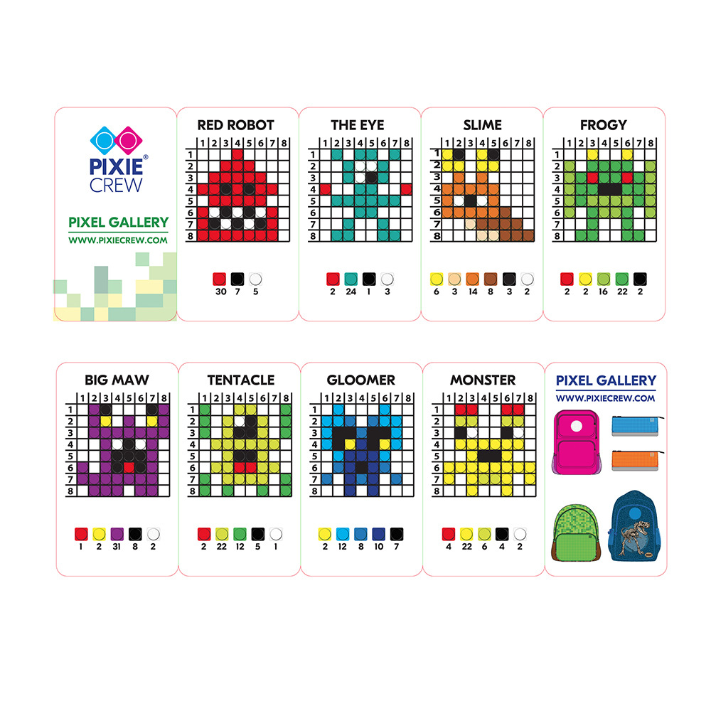 Tato kreativní sada 250 malých pixelů sestavených barevně tak, aby si každý mohl poskládat minimálně 8 předpřipravených obrázků. Součástí balení je papírová předloha "knihovna" postaviček, tedy nemusíte nic vymýšlet, nic hledat a začít rovnou skládat. Kreativitě se meze nekladou a lze tedy z balení poskládat mnohem více obrázků. Jedná se o skvělý dárek i pro ty kdo již PIXIE CREW produkt mají. Sada nabízí zábavnou a interaktivní cestu k personalizaci PIXIE CREW produktů, ať už jde o batohy, penály, nebo jiné doplňky. Vytvoření postaviček z pixelů je nejen zábavné, ale také poskytuje jedinečný a osobní dotek vašim věcem. Každý pixel přispívá k možnosti vytvořit rozmanité a barevné kombinace, čímž umožňuje dětem i dospělým rozvíjet jejich kreativitu a motorické dovednosti. Rozměr balení: 4,5x10,5x2 cm. Věk 6+