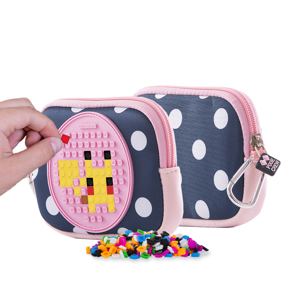 PIXIE CREW Malá Univerzální Kapsa na Zip: "Tato kompaktní a všestranná kapsa od PIXIE CREW je perfektním řešením pro bezpečné uložení vašich drobností, dokladů a peněz. Její praktická velikost a zipové uzavírání zajistí, že vaše cennosti budou vždy bezpečně uloženy a snadno přístupné. Kapsa je vyrobena z kvalitních, odolných materiálů, což ji činí ideální pro každodenní používání. Díky možnosti personalizace pomocí PIXIE CREW pixelů můžete kapsu snadno přizpůsobit svému stylu a potřebám. Je to ideální doplněk pro organizované nošení nezbytností v tašce nebo batohu." Na přední straně je umístěn unikátní růžový silikonový PIXIE CREW creative panel TM růžové barvy, kruh o průměru 9 cm a k dispozici máte 86 bodů pro nekonečné množství motivů na každý den díky PIXIES (pixelům), které můžete kdykoli sundat a vyměnit za jiné. Ke každému pouzdru zdarma přikládáme balíček přibližně 55 ks malých PIXIES (pixelů), 10 malých PIXIES (pixelů) s písmeny, 4 multipixely (pixel o vel. 2x2 body) s obrázky