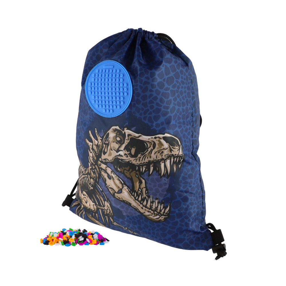 Praktický a univerzální vak na záda od PIXIE CREW s designem dinosaura je ideálním doplňkem k aktovce nebo jako samostatný pomocník pro volnočasové aktivity. Jeho hlavní prostor uzavíratelný šňurkovými popruhy poskytuje dostatek místa pro uložení různých drobností, ať už jsou to sportovní potřeby, svačina nebo školní pomůcky. Praktický je také i díky použitému materiálu, který je jednoduchý na údržbu a je lehce složitelný a skladný. Sáček je lehký a snadno se nosí, a zároveň nabízí možnost personalizace pomocí pixelů, což umožňuje dětem vyjádřit svůj osobní styl. Na přední straně je umístěn unikátní silikonový PIXIE CREW creative panel TM modré barvy. Kruh je o průměru 9 cm a k dispozici máte 86 bodů pro nekonečné množství motivů na každý den díky PIXIES (pixelům), které můžete kdykoli sundat a vyměnit za jiné. K vaku zdarma přikládáme balíček s malými PIXIES (pixely). Rozměr: 32x43x1. Věk 6+