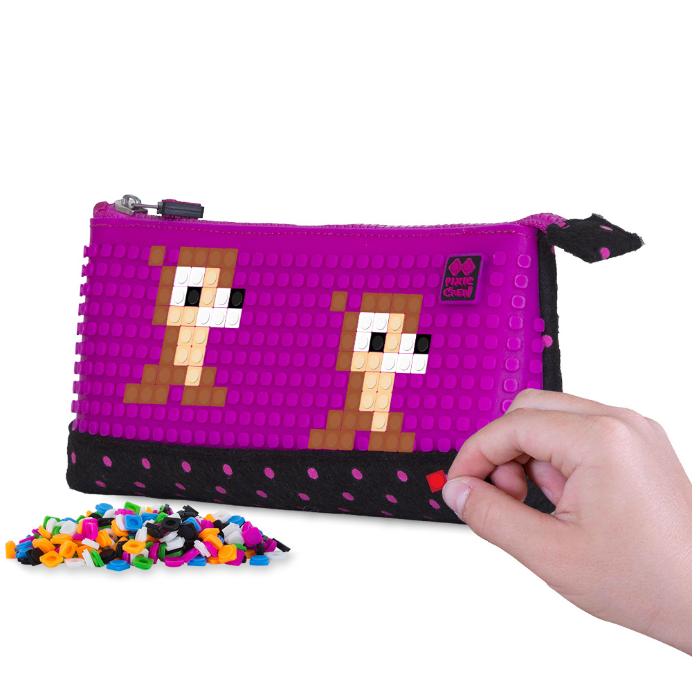 PIXIE CREW Universální Kapsa / Penál: "Tento všestranný produkt od PIXIE CREW je ideálním společníkem pro každodenní dobrodružství. Ať už ho použijete jako penál pro uchování psacích potřeb nebo jako stylovou kapsu na drobnosti, vždy vynikne svou praktičností a odolností. Díky inovativnímu designu a kvalitnímu materiálu je tento výrobek nejen funkční, ale i módní doplněk, který lze snadno přizpůsobit pomocí PIXIE CREW pixelů pro vyjádření vašeho osobního stylu. Je to perfektní doplněk pro školu, práci nebo volný čas, který udrží vaše nezbytnosti organizované a vždy po ruce." Přední stranu tvoří unikátní silikonový PIXIE CREW creative panel TM fuchsiové barvy o velikosti 33 x 10 bodů. Máte tedy k dispozici 227 pozic pro nekonečné množství motivů na každý den díky PIXIES (pixelům), které můžete kdykoli sundat a vyměnit za jiné. Ke každému pouzdru zdarma přikládáme balíček přibližně 100 ks malých PIXIES a mini galerii pro inspiraci. Rozměr balení: 20,3x12x3,7cm. Věk: 6+