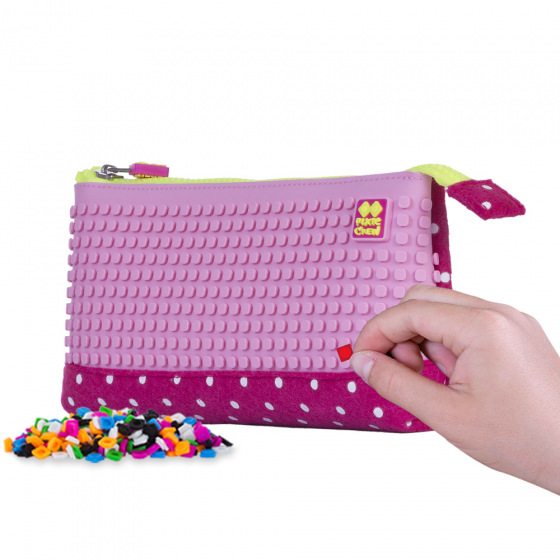 PIXIE CREW Universální Kapsa / Penál: "Tento všestranný produkt od PIXIE CREW je ideálním společníkem pro každodenní dobrodružství. Ať už ho použijete jako penál pro uchování psacích potřeb nebo jako stylovou kapsu na drobnosti, vždy vynikne svou praktičností a odolností. Díky inovativnímu designu a kvalitnímu materiálu je tento výrobek nejen funkční, ale i módní doplněk, který lze snadno přizpůsobit pomocí PIXIE CREW pixelů pro vyjádření vašeho osobního stylu. Je to perfektní doplněk pro školu, práci nebo volný čas, který udrží vaše nezbytnosti organizované a vždy po ruce." Přední stranu tvoří unikátní silikonový PIXIE CREW creative panel TM růžové barvy o velikosti 33 x 10 bodů. Máte tedy k dispozici 227 pozic pro nekonečné množství motivů na každý den díky PIXIES (pixelům), které můžete kdykoli sundat a vyměnit za jiné. Ke každému pouzdru zdarma přikládáme balíček přibližně 100 ks malých PIXIES a mini galerii pro inspiraci. Rozměr balení: 20,3x12x3,7cm. Věk: 6+