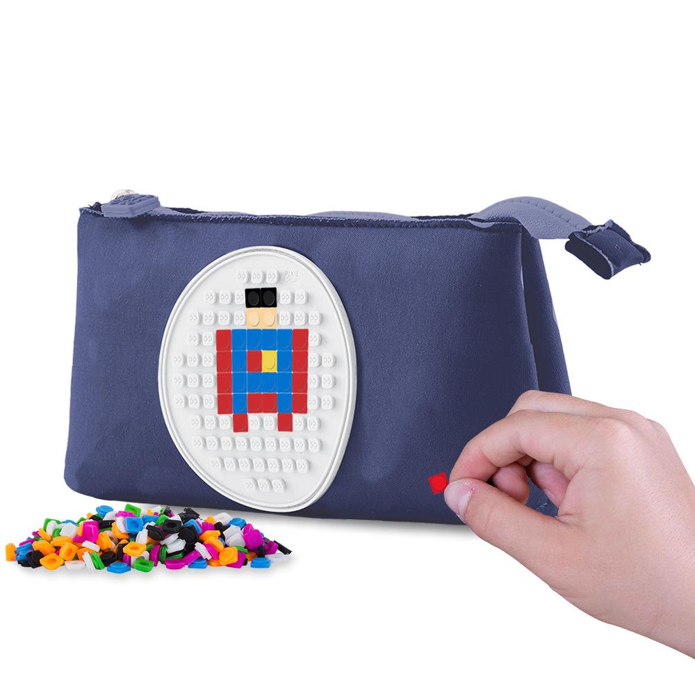 Pixelové školní pouzdro PIXIE CREW je originální a praktický školní penál, který bude do školy rád nosit každý chlapec nebo slečna. Pouzdro je vyrobené z kvalitního neoprenu a nejkvalitnějšího silikonu. Tato silikonová plocha slouží jako prostor, na který lze patentovaným způsobem uchycení umístit barevné pixely, které vám umožní vytvořit vlastní vzhled penálu.