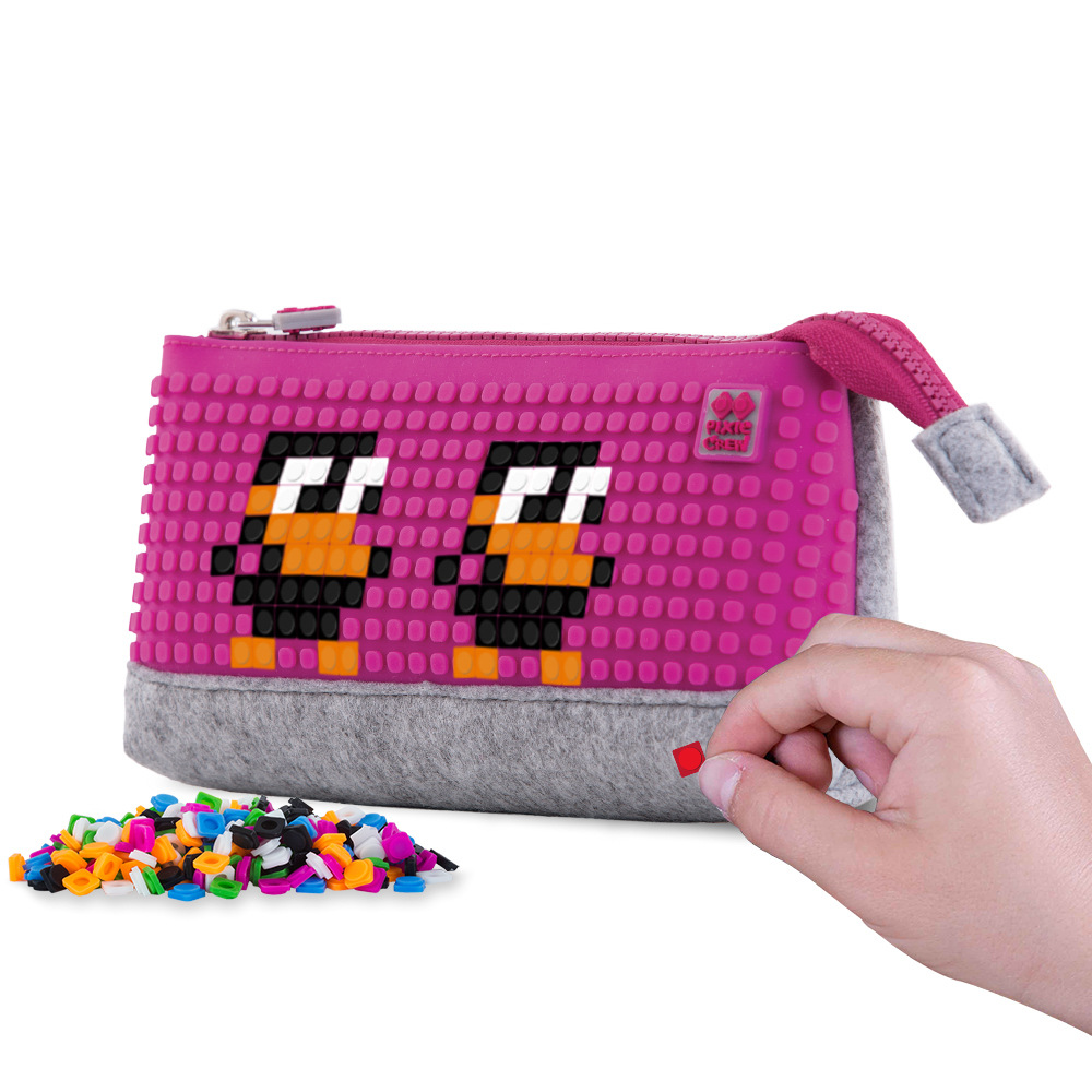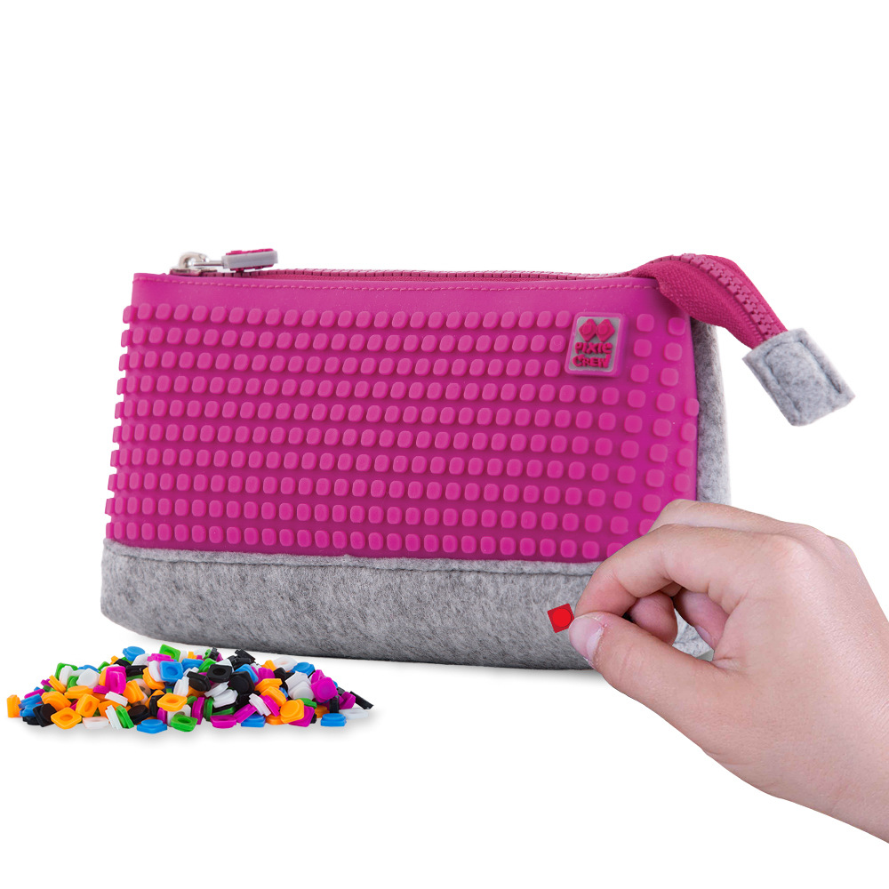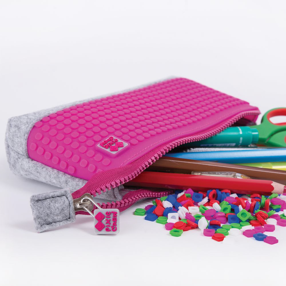 Víceúčelové velké pouzdro nejen na školní potřeby. Pouzdro je vyrobeno kombinací silikonu a trendové plsti, které chrání obsah pouzdra při nárazech a pádech. Pouzdro je v horní části uzavíratelné na zip. Uvnitř pouzdra je dostatek místa na pera, tužky a další školní potřeby nebo drobné věci, které potřebujete mít vždy po ruce. Přední stranu tvoří unikátní silikonový PIXIE CREW creative panel TM fuchsiové barvy o velikosti 33 x 10 bodů. Máte tedy k dispozici 227 pozic pro nekonečné množství motivů na každý den díky PIXIES (pixelům), které můžete kdykoli sundat a vyměnit za jiné. Ke každému pouzdru zdarma přikládáme balíček přibližně 100 ks malých PIXIES a mini galerii pro inspiraci. Rozměr balení: 20,3x12x3,7cm. Věk: 6+