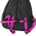 Školní batoh je vhodný od 3. třídy ZŠ, pro děti od výšky 130 cm. Batoh je vyroben z voděodolného polyesterového materiálu a silikonu, což umožňuje velice snadnou údržbu. Stačí jen otřít vlhkým hadříkem nebo houbičkou. Batoh má tři samostatně uzavíratelná prostorná oddělení. Kapsa nejblíže u zad je rozměrově největší a vejdou se do ní sešity, či jiné předměty o velikosti A4. Dvě velká oddělení jsou vhodná na knihy, sešity a jiné dokumenty menšího formátu. Po obou stranách batohu jsou síťovinové kapsy, do kterých lze umístit láhev. Pro komfortní užívání má batoh ergonomicky tvarovaná polstrovaná záda s ventilací a posuvný zádový systém umožňující nastavení optimální polohu popruhů vzhledem k výšce dítěte. Popruhy jsou široké a polstrované, aby se nezařezávaly a v přední části mají délkově nastavitelnou hrudní přezku, aby dětem nepadaly z ramen. Pro pohodlné přenášení v ruce je batoh vybaven polstrovaným úchytem, které také může sloužit pro zavěšení. Na přední straně batohu je umístěn uni