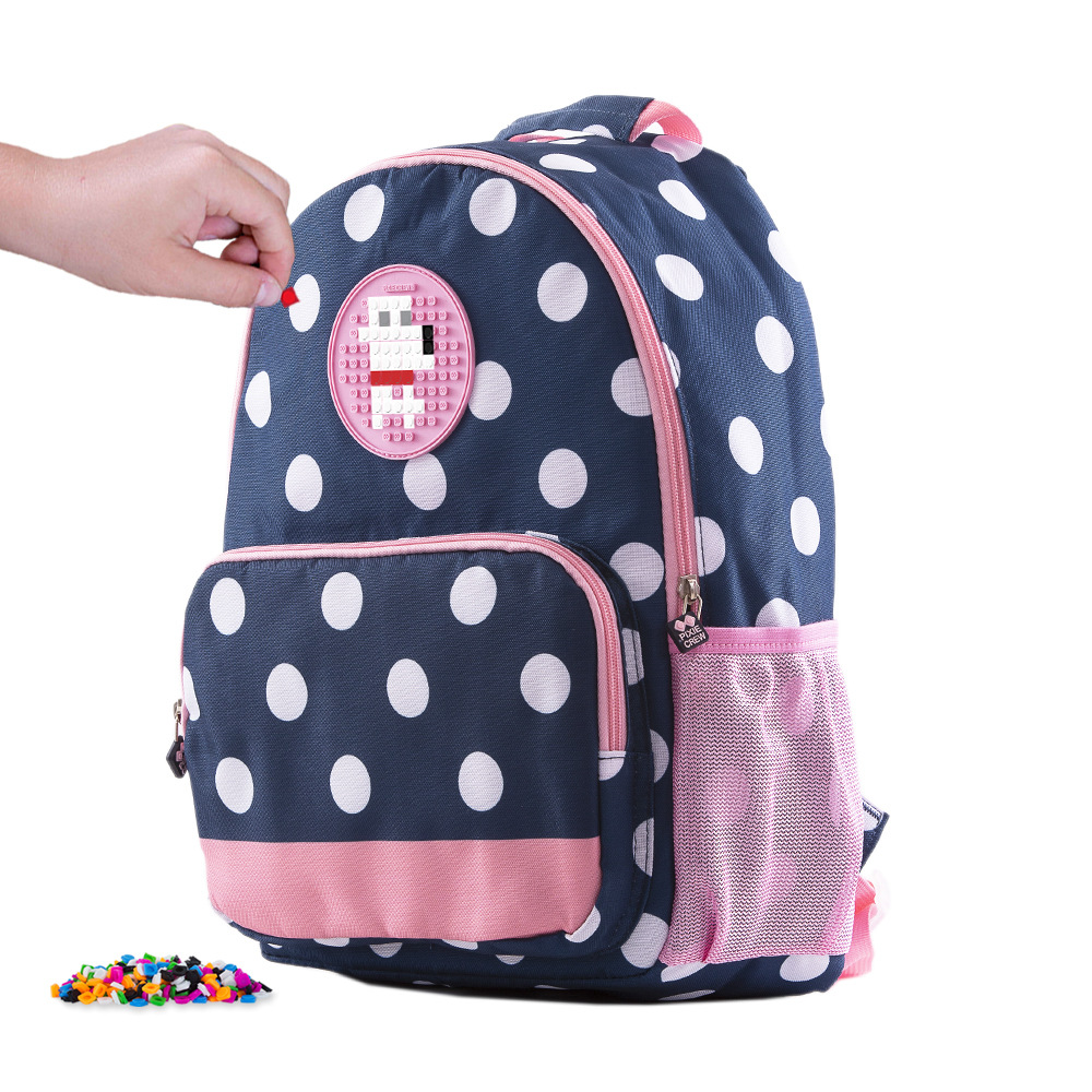 PIXIE CREW Jednokomorový Batoh s Přední Kapsou: "Tento praktický a elegantní jednokomorový batoh od PIXIE CREW je ideální pro každodenní nošení. Hlavní komora a přední kapsa jsou opatřeny zipy pro bezpečné uložení vašich věcí. Postranní síťované kapsy jsou perfektní pro uchování láhví s nápoji nebo jiných drobností. Batoh také nabízí pohodlný prošitý zádový systém, který zajišťuje komfort při nošení, a délka popruhů je nastavitelná, což umožňuje přizpůsobení pro různé výšky a postavy. Jeho jednoduchý, ale stylový design je ideální pro školní i volnočasové aktivity, a nabízí také možnost personalizace pomocí PIXIE CREW pixelů." Na přední straně batohu je našitá kapsa určená pro menší věci a nad ní je umístěn jedinečný silikonový PIXIE CREW creative panel TM růžové barvy. Kruh je o průměru 9 cm a k dispozici máte 86 bodů pro nekonečné množství motivů na každý den díky PIXIES (pixelům), které můžete kdykoli sundat a vyměnit za jiné. Ke každému batohu zdarma přikládáme balíček přibližně 55