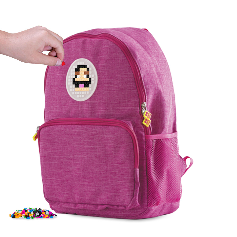 PIXIE CREW Jednokomorový Batoh s Přední Kapsou: "Tento praktický a elegantní jednokomorový batoh od PIXIE CREW je ideální pro každodenní nošení. Hlavní komora a přední kapsa jsou opatřeny zipy pro bezpečné uložení vašich věcí. Postranní síťované kapsy jsou perfektní pro uchování láhví s nápoji nebo jiných drobností. Batoh také nabízí pohodlný prošitý zádový systém, který zajišťuje komfort při nošení, a délka popruhů je nastavitelná, což umožňuje přizpůsobení pro různé výšky a postavy. Jeho jednoduchý, ale stylový design je ideální pro školní i volnočasové aktivity, a nabízí také možnost personalizace pomocí PIXIE CREW pixelů." Na přední straně batohu je našitá kapsa určená pro menší věci s jedinečným silikonovým PIXIE CREW creative panelem TM fuchsiové barvy o velikosti 39 x 25 bodů. Máte tedy 958 pozic pro nekonečné množství motivů na každý den díky PIXIES (pixelům), které můžete kdykoli sundat a vyměnit za jiné. Ke každému batohu zdarma přikládáme balíček přibližně 200 ks malých PIXI