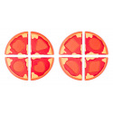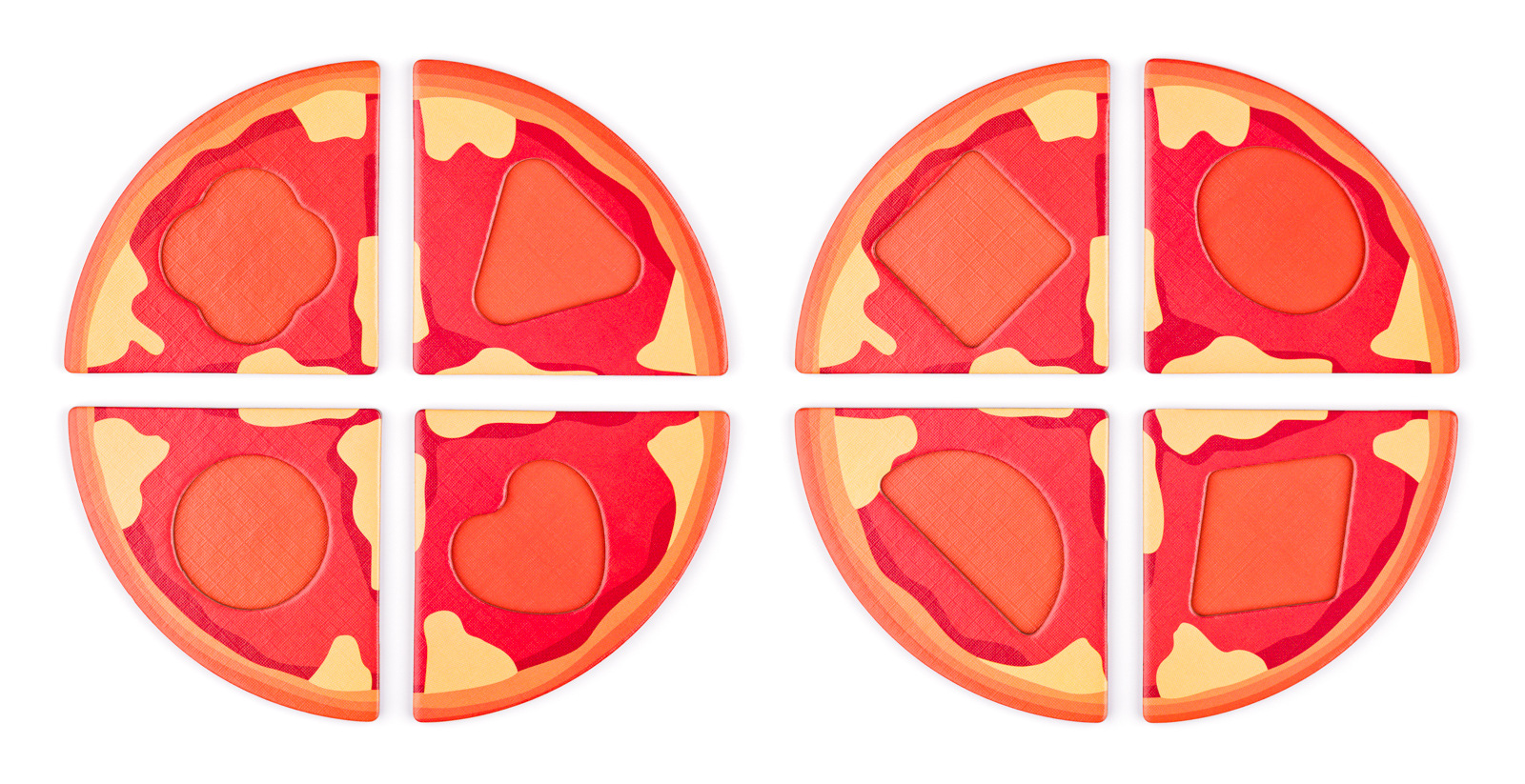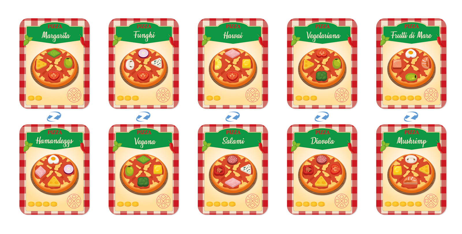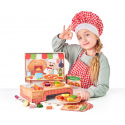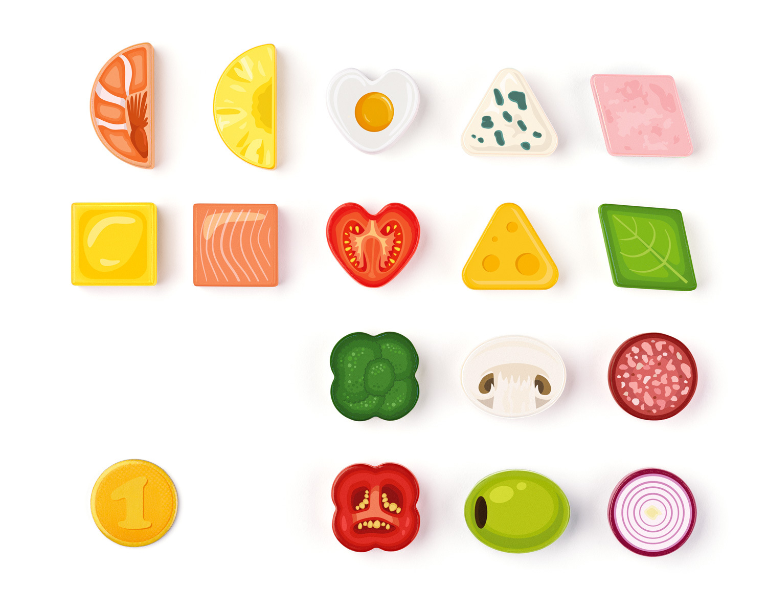 Tato hra je především o rozlišování tvarů. Naučná část je příjemně propojena s přípravou a "pojídáním" pizzy. Dítě má za úkol připravit pizzu dle obrázku vybrané karty za pomocí dílků s ingrediencemi. Dílky však musí přesně sedět. Tvarem i obsahem musí odpovídat vybrané kartě. Hotovou pizzu pak vloží do pece, upeče a pak už jen zbývá vyinkasovat přesný počet mincí, který je uveden na každé kartě. | Věk:2+ | Rozměr: 29,5x22x22cm. Průměr pizzy: 15 cm.