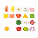 Všechny potraviny na dřevěném táce jsou složeny z částí spojených suchými zipy. Potraviny lze takto opakovaně krájet a znovu skládat. Ideální hračka pro rozvoj motoriky a logického myšlení. Věk: 3+. Rozměr: 28 x 19 cm