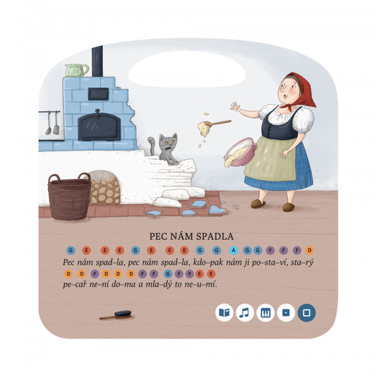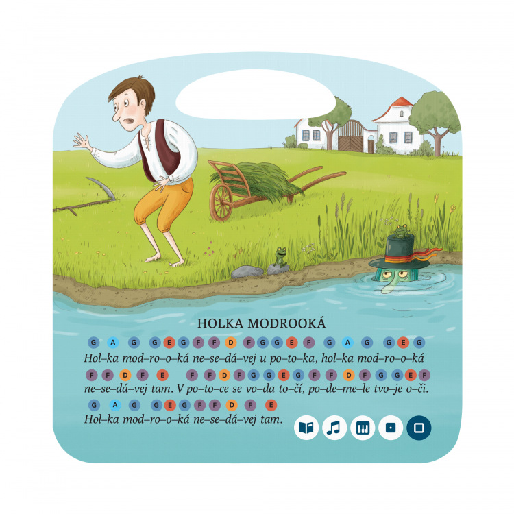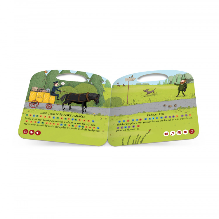 Písně jsou doplněny milými příběhy. Mluvicí a zpívající interaktivní kniha Zpívánky I obsahuje přes 500 zvukových stop.