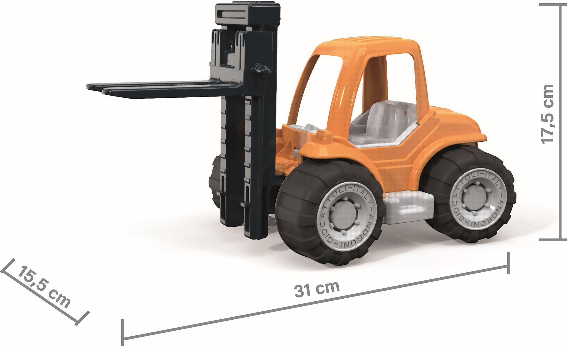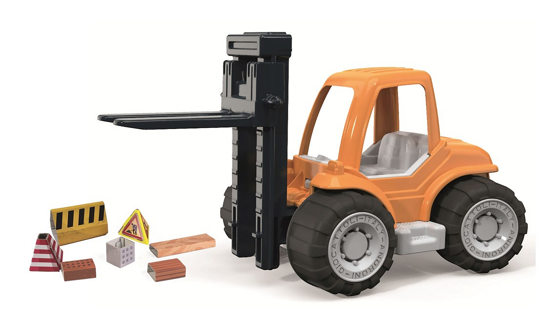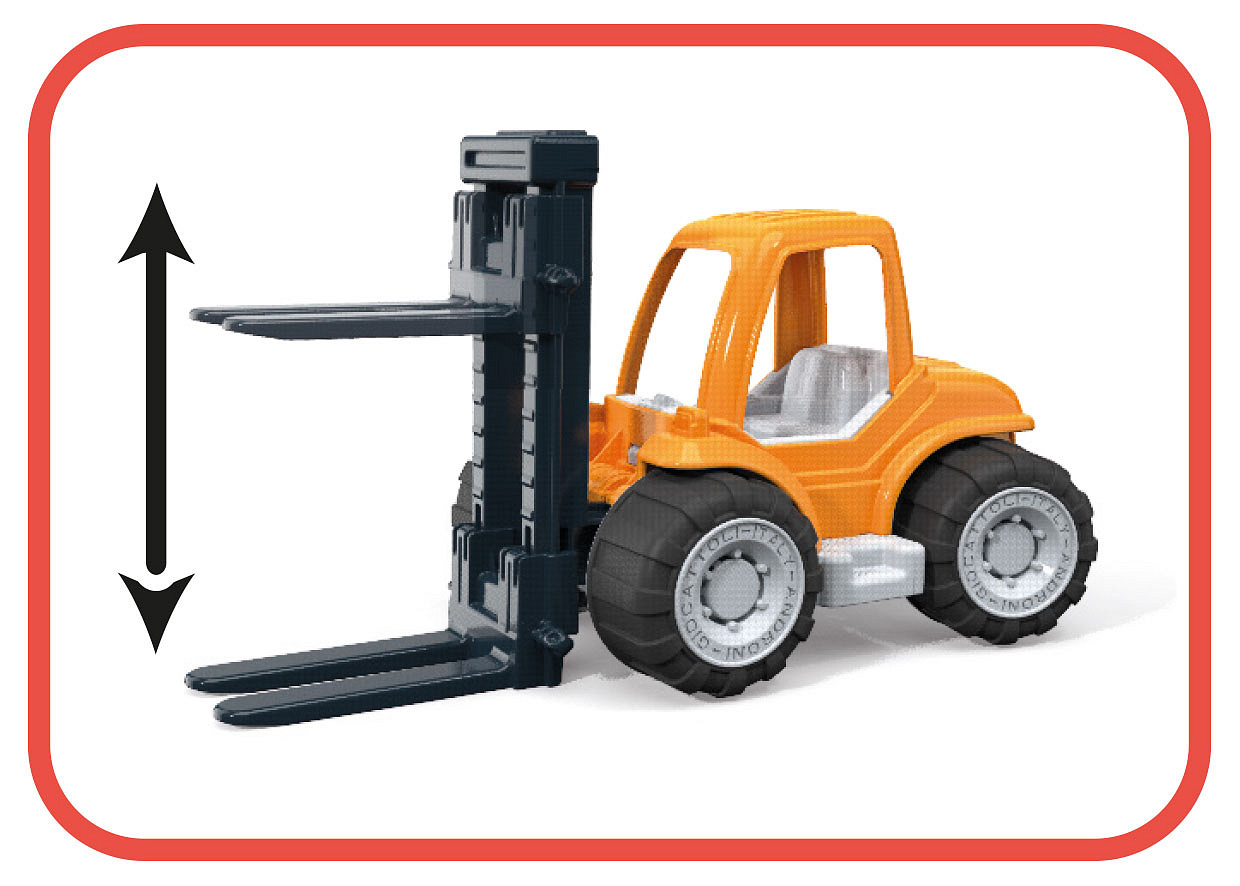 Plastový vysokozdvižný vozík z řady Millenlium s pogumovanými koly je odolná hračka pro děti. Má pohyblivou zdvihací vidlici, která umožňuje realistickou manipulaci s nákladem a podporuje fantazii při hře. Součástí balení jsou také kartonové bloky, které umožňují vytvářet různé herní scénáře a podporují fantazii a jemnou motoriku. Vyrobené z kvalitních plastů v Itálii. Rozměry balení: 32 x 16 x 17,8 cm (d x š x v). Váha: 0,55 kg. Doporučený věk od 10 měsíců.