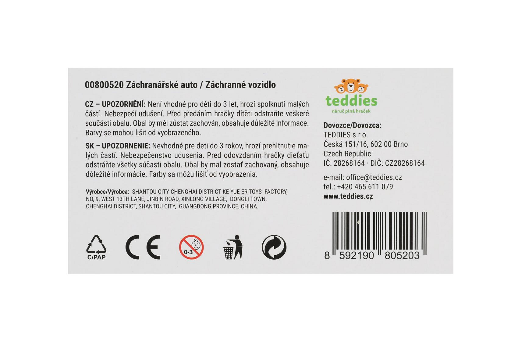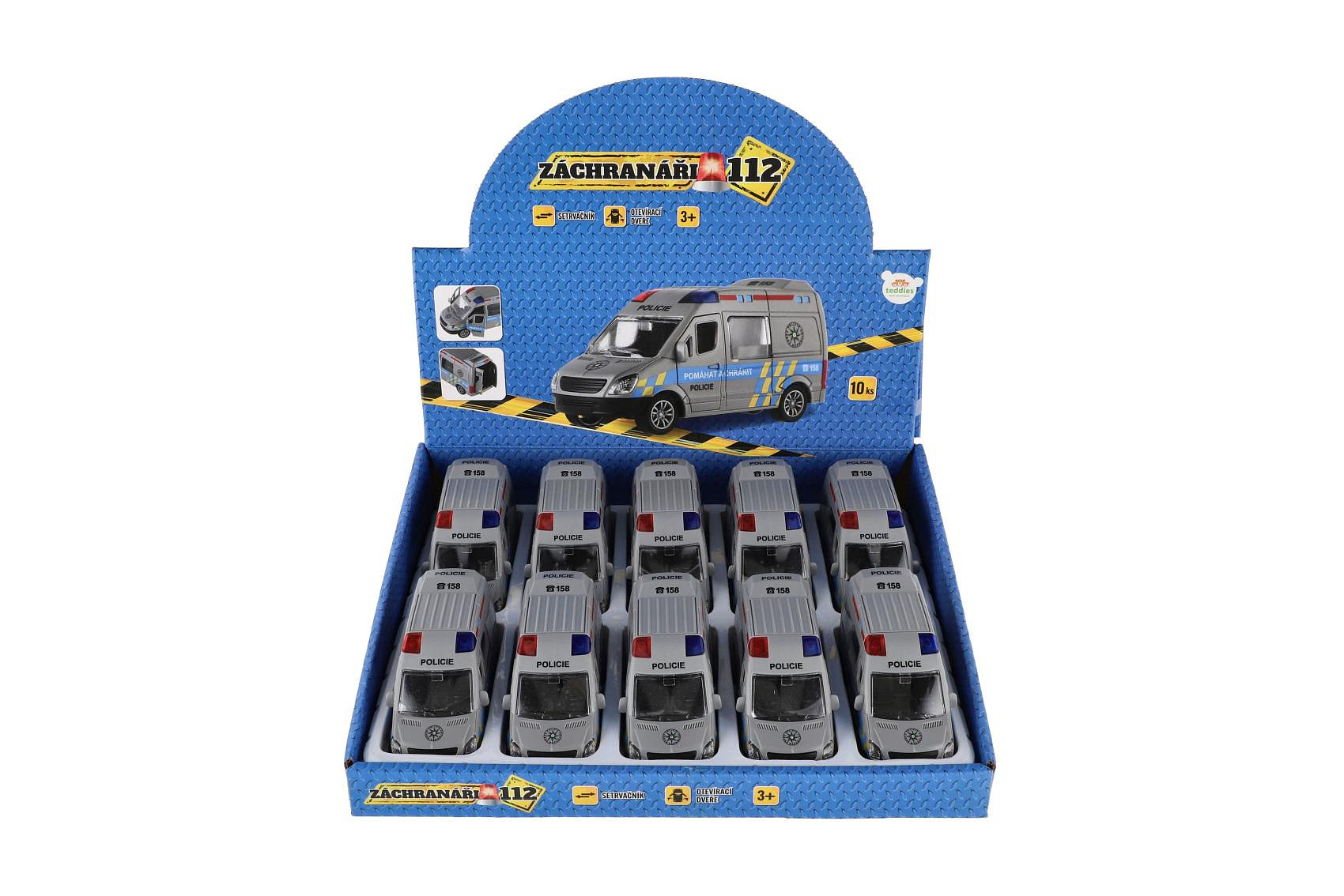 Opis Teddies Auto policie plast 12cm na setrvačník 10ks v boxu
