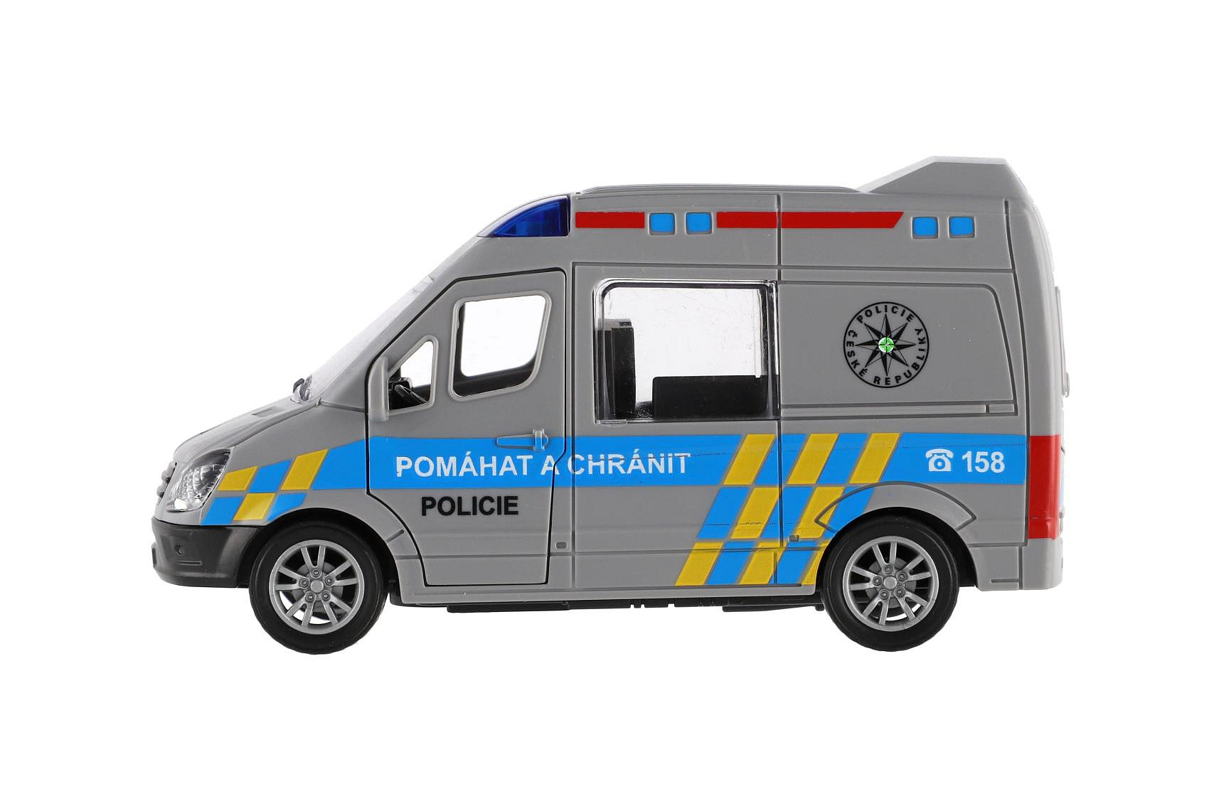 Policejní zásah může začít. Plastové policejní auto o délce 12 cm je vybaveno setrvačníkovým pohonem – stačí natáhnout dozadu a vozidlo se samo rozjede vpřed. Díky typickému policejnímu designu a detailnímu zpracování je ideální pro hru na záchranáře a bezpečnostní složky. Skvěle se hodí jako doplněk k dalším vozidlům z řady hasiči či ambulance.