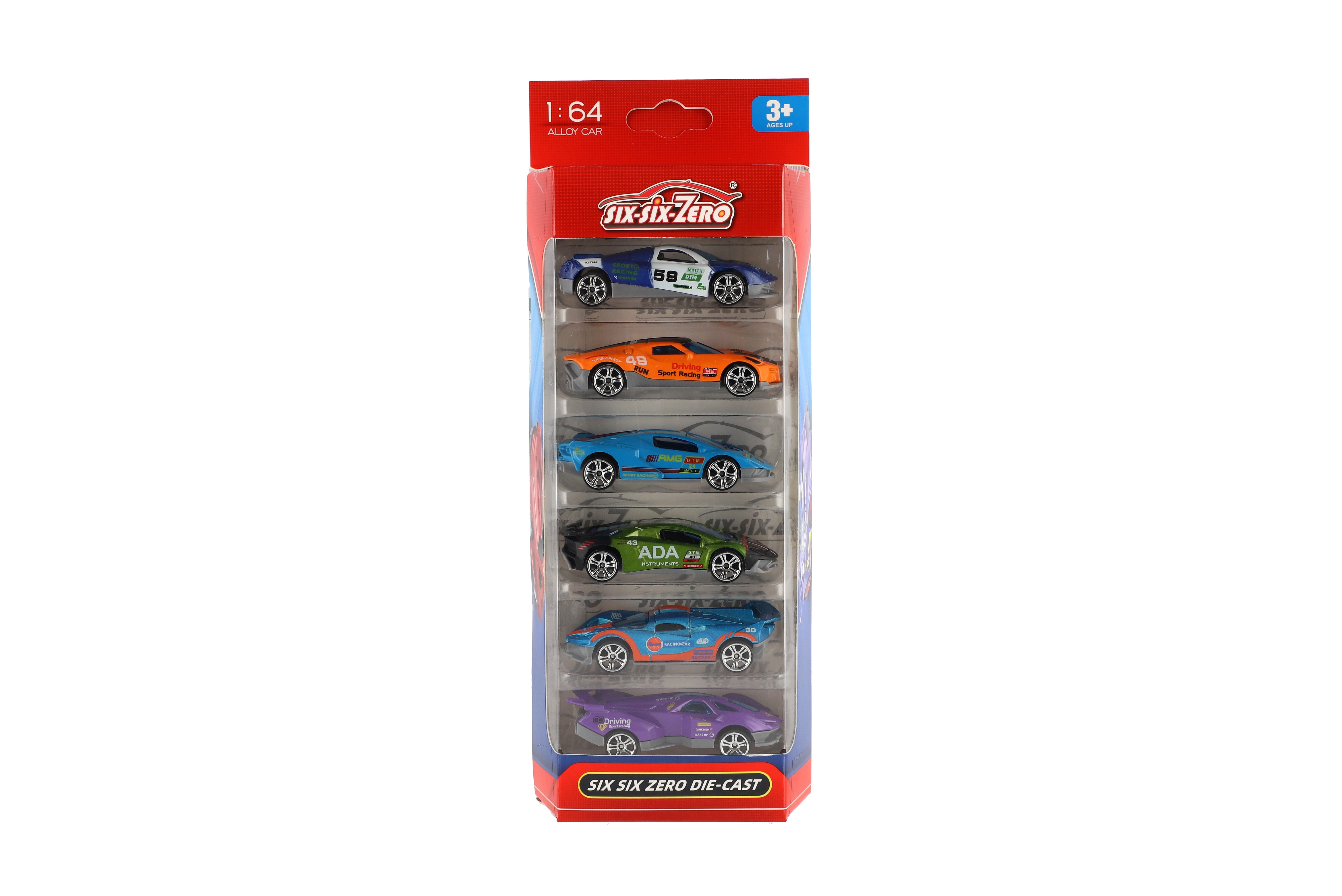 Opis Teddies Auto sportowe 6 szt. metal/plastik 8 cm na wolny bieg w pudełku 10,5x27,5x4 cm