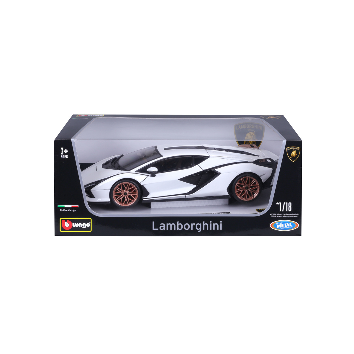 Modely automobilů Bburago v měřítku 1:18 jsou sbírkou krásného designu s vysokým důrazem na přesnost detailů. Modely jsou vyrobeny z litého kovu s plastovými detaily. Většina modelů z kolekce má otevírací dveře, kufr nebo kapotu. Některé z modelů mají funkční řízení. Baleno v licenční krabičce. Nevhodné pro děti do 3 let. Rozměry balení: 12 x 30 x 17,7 cm. Věk 3+