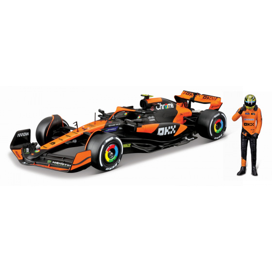 Bburago - RACE Formule F1 s figurkou jezdce, McLaren F1 Team MCL38(2024), #4 Lando Norris, 1:24