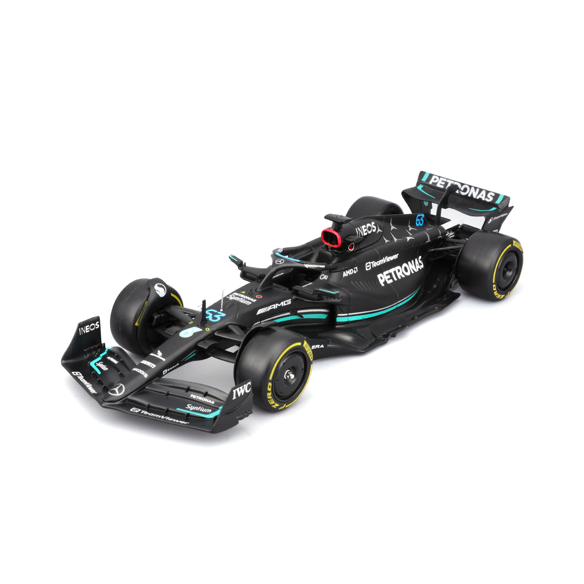 Bburago modely závodních vozů Formule 1 v měřítku 1:24 z kolekce RACE jsou sbírkou krásného designu s vysokým důrazem na přesnost detailů. Součástí modelů je plastová figurka jezdce F1 v mistrovské póze. Modely F1 ze stáje Mercedes-AMG Petronas Team W14 E Performance (2023) jsou vyrobeny z litého kovu s plastovými detaily. Každý z modelů je v klasickém závodním designu a se závodním číslem. Baleno v krabičce. Nevhodné pro děti do 3 let. Rozměry balení: 12,7 x 28 x 12,7 cm. Věk: 14+