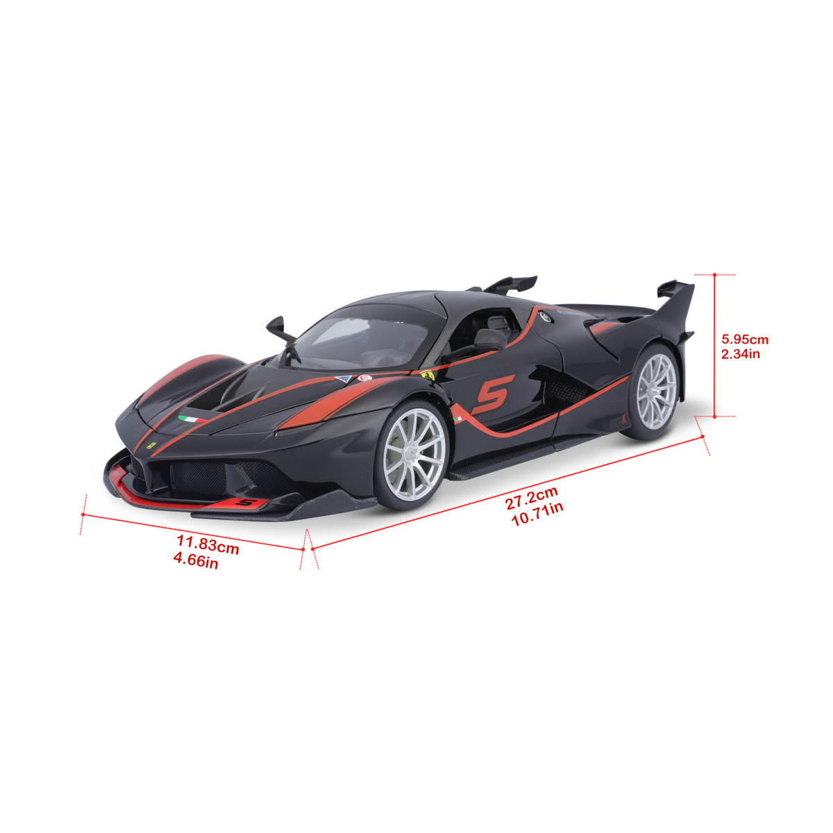 Modely závodních automobilů Ferrari v měřítku 1:24 z kolekce RACING jsou sbírkou krásného designu s vysokým důrazem na přesnost detailů. Modely jsou vyrobeny z litého kovu s plastovými detaily. Detailní provedení motorových prostor a interiéru. Většina modelů z kolekce má otevírací dveře, kufr nebo kapotu. Některé z modelů mají funkční řízení. Každý z modelů je v závodním designu a se závodním číslem. Model je namontován na výstavním stojánku. Baleno v krabičce. Nevhodné pro děti do 3 let. Rozměry balení: 10,3 x 24,5 x 12,6 cm. Věk: 14+